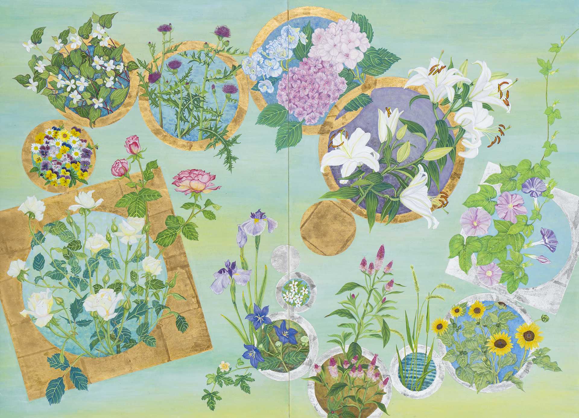 薄美濃紙/岩絵具, 水干絵具, 墨, 膠, 金泥
