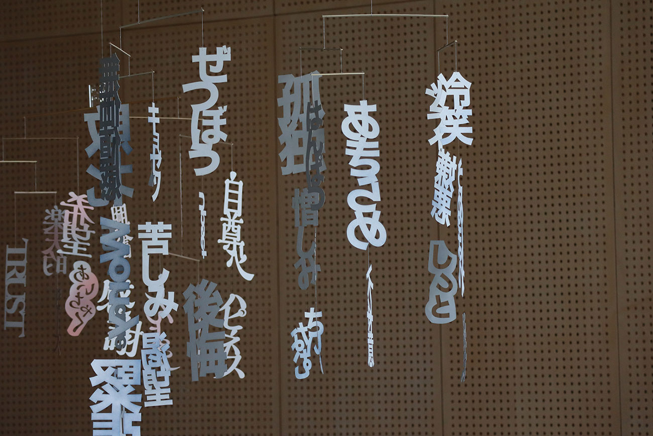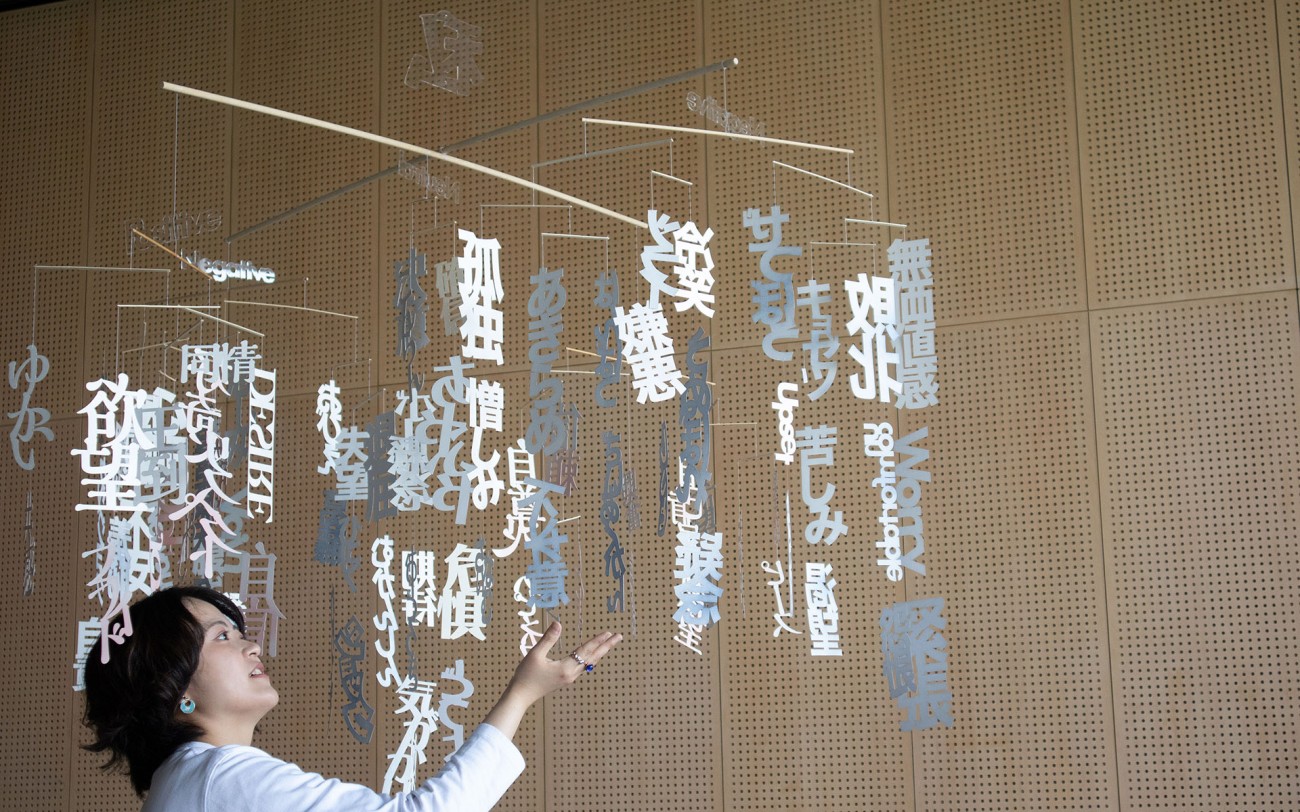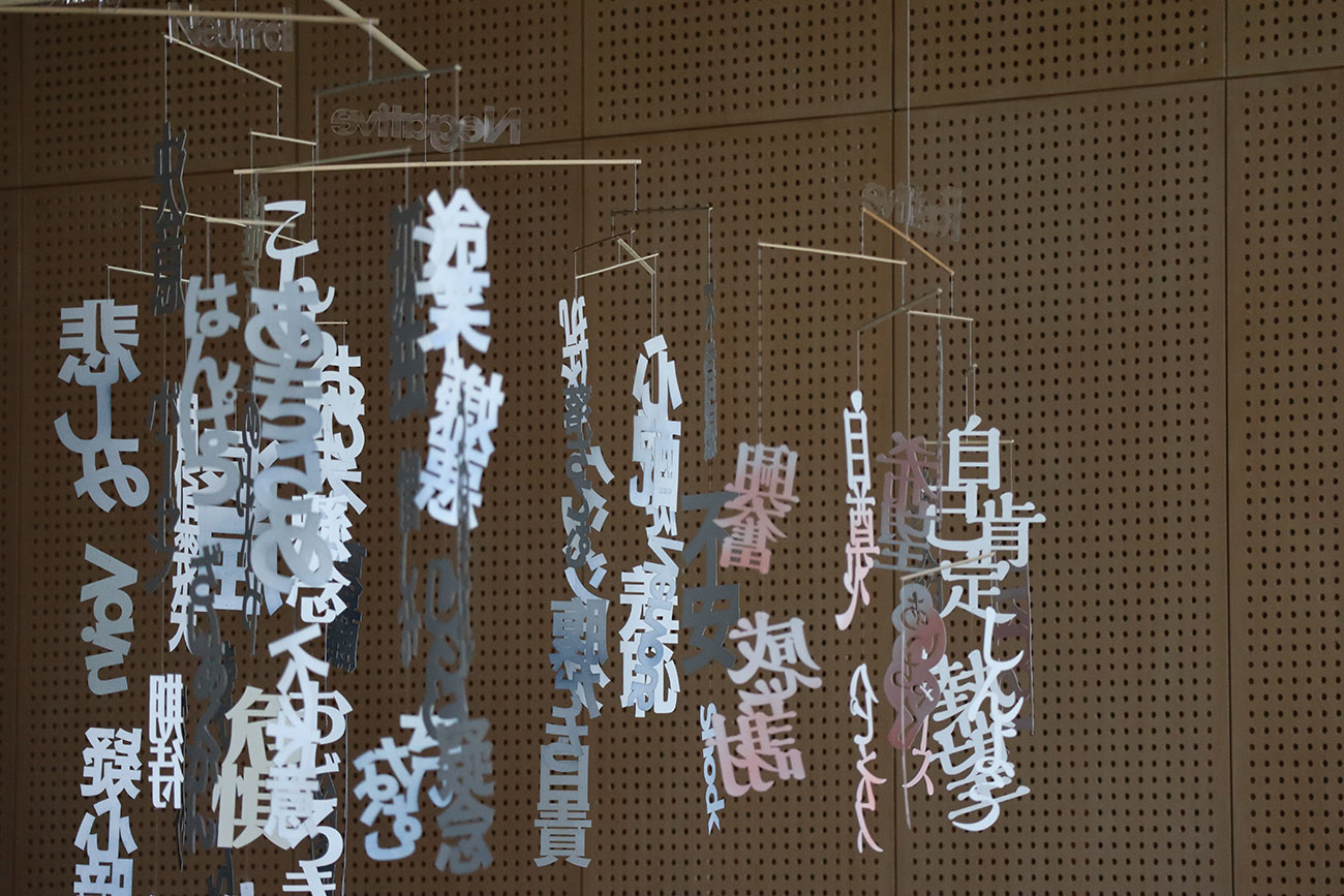 制作の動機は、目に見えない「感情」をカタチにして見える化したかったから。人間は言葉をしゃべり文字を持つので、感情という抽象的な概念を理解できる。感情は社会性の中ではぐくまれていき、人や物との交流でネガティブなものもポジティブなものも豊かに育っていく。人は感情の生き物とも言われるが、自分の感情を正しく認識できる人は少ない。なぜなら感情は、経験や体験の中で常に動いているからだ。しかも複数の感情が同時に発生しては、あっという間に消えてしまう。初めて味わうポジティブな感情のインパクトは、次第に慣れて普段は気にもかけなくなる。一方で、ネガティブな感情は小さくても、積み重なっていくと心身が病んでしまう。私たちはさまざまな感情にさらされながらも、メンタルのバランスを保って日常を送っている。そういった人間の姿がモビールのゆらゆら揺れる動きと重なった。