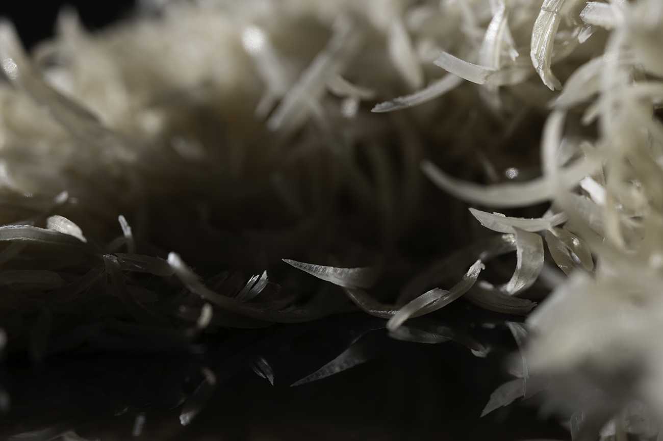 被写体は、自分を含めた家族の爪や髪の毛をはじめ、切り離され、自然と落ち、排出されたものたち。さっきまであなた、もしくは自分の一部であったそのものが、生命ある身体から切り離された後の『モノ』を対象としている。身体から離れた瞬間にゴミや不衛生なものに変わるその落差。そこへの違和感が作品づくりの原点にある。