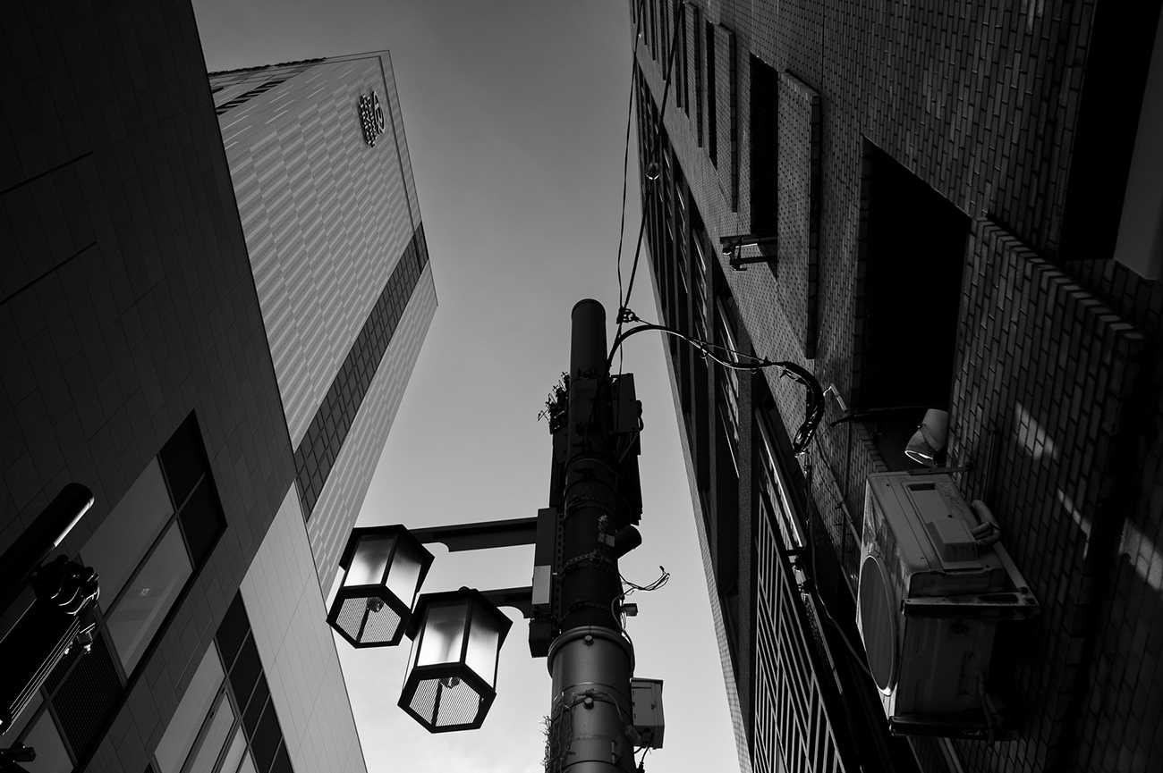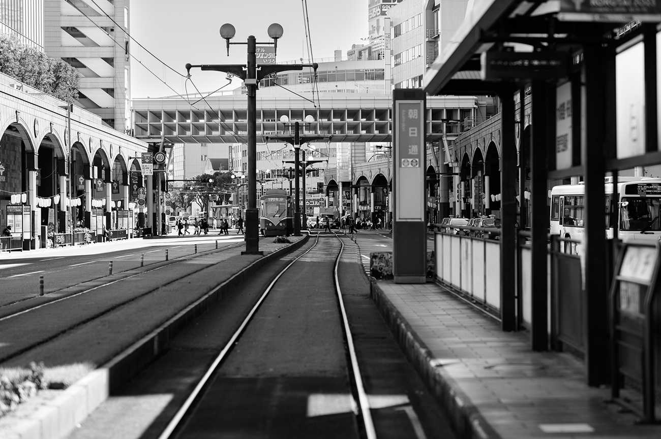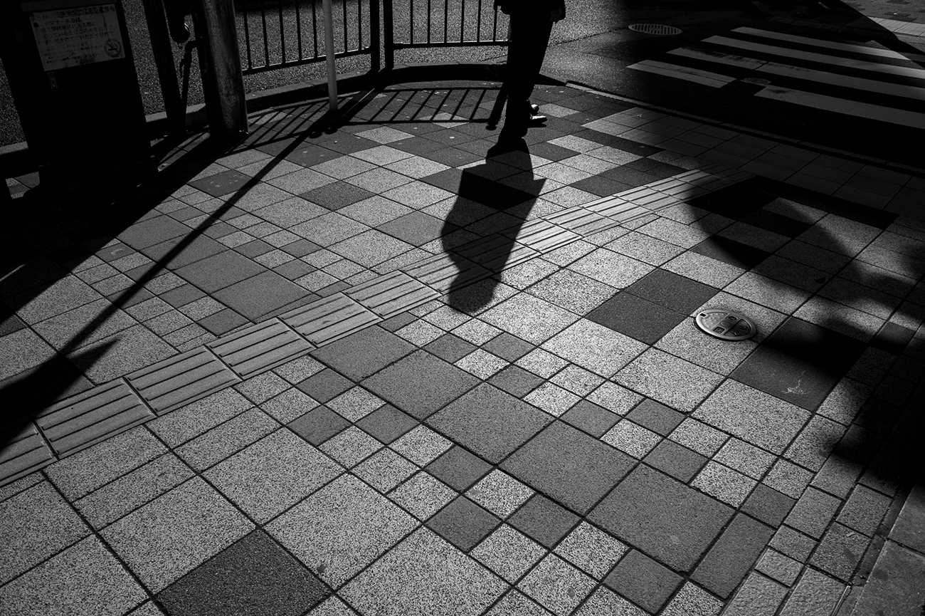 鹿児島県の繁華街として有名な場所に天文館というエリアがある。この街の様子を白黒を用い様々に捉えたが、その中でも来訪者が立ち去る姿を託した一枚を選んだ。