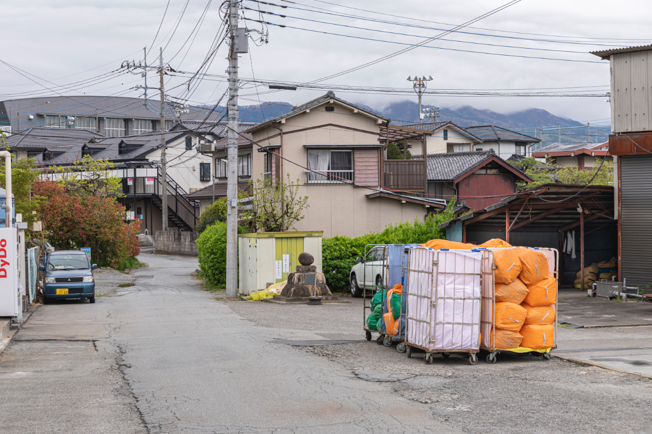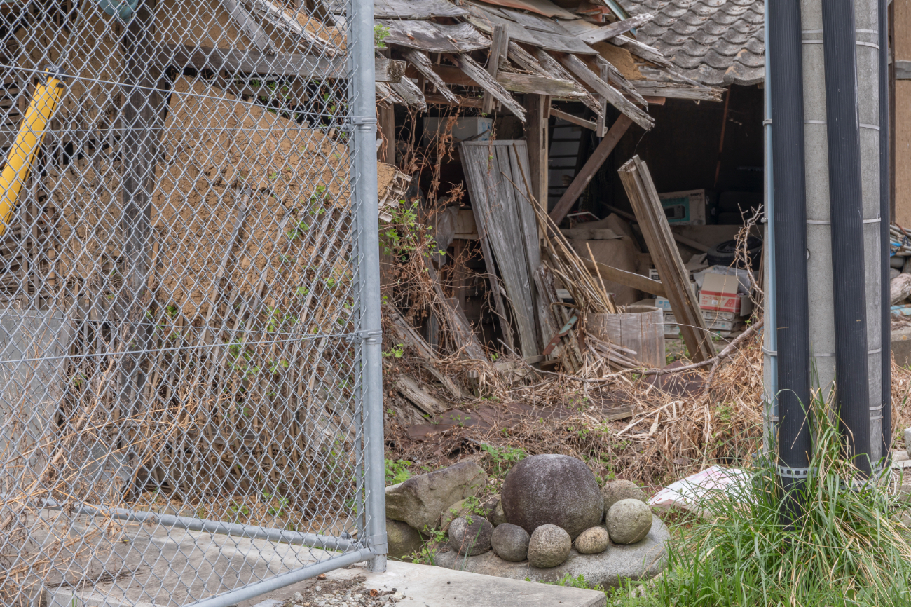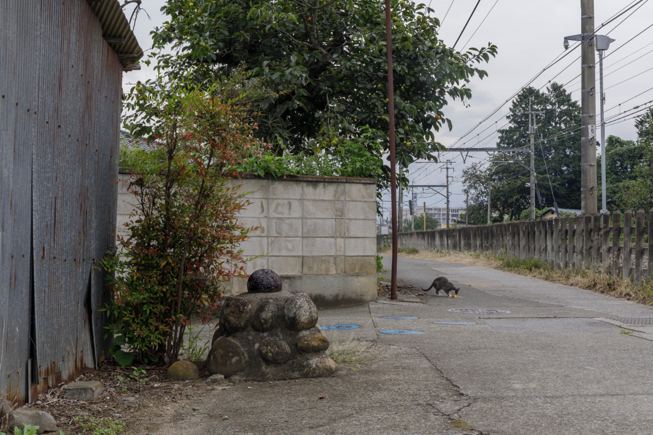 川原で偶然見つけた丸石。あまりにも丸い石を見つけた私は何かいいことがあると勝手に思い込み、それを家に持ち帰ったのである。そう言えば家の近くに誰が置いたのか分からない丸石がある。その丸石は小正月にしめ縄を巡らされ気品高く振る舞っている。人々の日常にすっかり居着いてしまった丸石。そこは紛れもない丸石の居場所である。街並みや人々の日常は絶えず流れ続けているが丸石だけは日常と言う川底に今もじっとたたずんでいる。私は丸石の居場所を訪ね歩きながら街並みの移ろいを自身の記憶と照らし合わせていた。