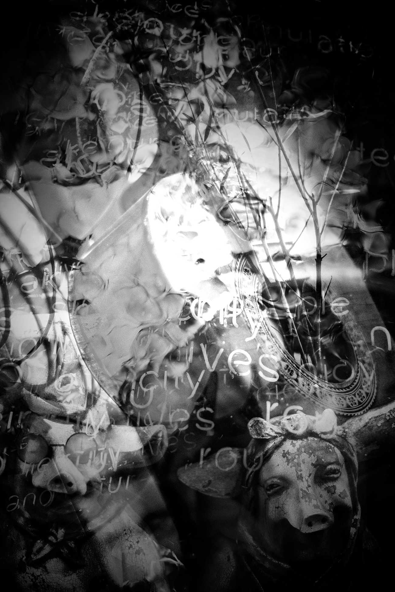 タイトルはサミュエル・バトラーの小説『エレホン』に依る。ユートピアの英訳nowhereを逆さに読んだものだ。作品の内容は当然ディストピア(反理想郷)となる。『マクベス』の魔女は「きれいはきたない きたないはきれい」と宣い、中山岩太は「でっち上げてても、美しいものを作り上げる」と云った。価値の転倒・意味の倒錯を敢えて写真的に譬えるなら、ポジとネガが自在に反転する様に似ているだろう。視点や視線を僅かに違えることで、世界は万華鏡のように変容することを我々は知っている。ならばこそ、奇麗な色眼鏡で世界を変換し続けるかのような馨しい絵空事で、毎日を埋め尽くそうではないか!