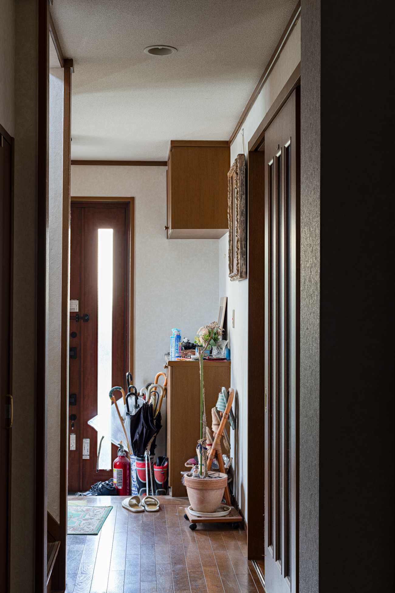 母の病気をきっかけに6,7年ほど前に実家に戻った。かつては6人で住んでいた我が家だが、今では父と私だけになってしまった。大きくは変わっていないはずの実家だが、一度離れたこの空間に対して我が家という感覚は戻ってこない。我が家であるはずの家に我が家という感覚を持てずに暮らしている。目の前にある見慣れたはずの家が、誰かの家のようにも思えてくる。そんな感覚を持ちながら撮影を続けている。撮影を続けることで自分や家に刻まれた記憶に触れ、我が家と実感できるものを探している。