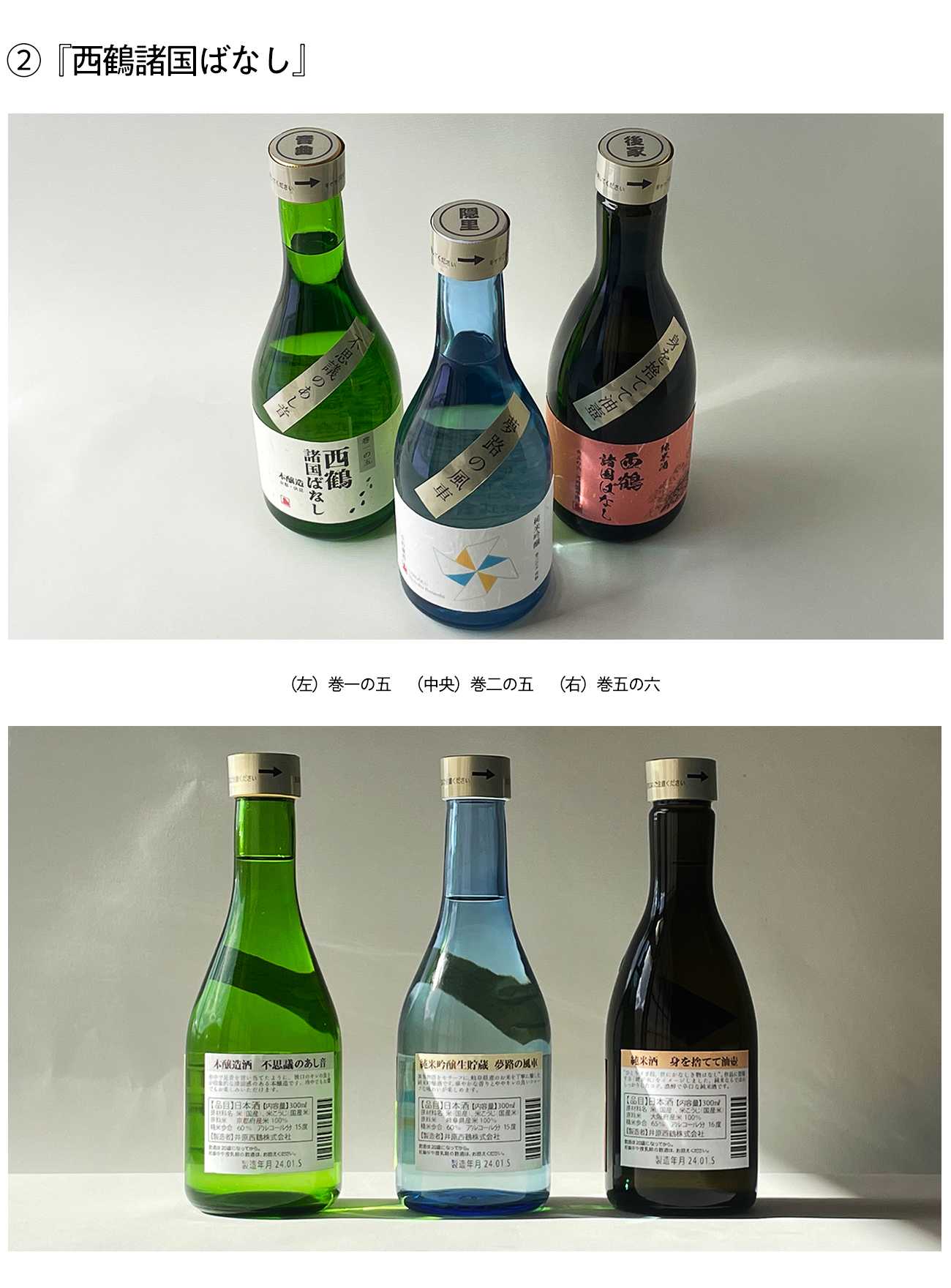 日本酒瓶(300㎖)胴ラベル/47×100mm、裏ラベル/50×63mm 3点