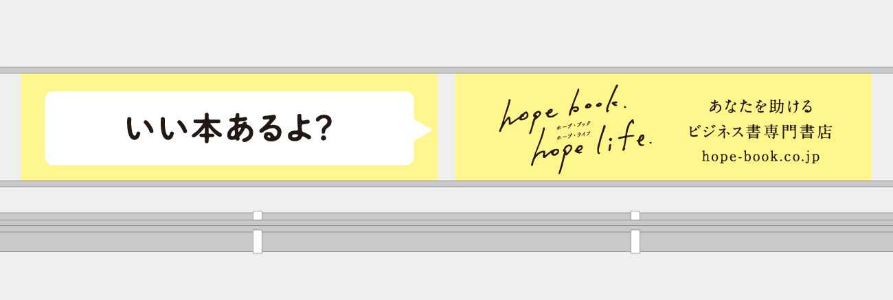 架空のビジネス書専門書店「hope book. hope life.」による、普段ビジネス書を読まない人をターゲットにしたトレインジャック広告を作成しました。