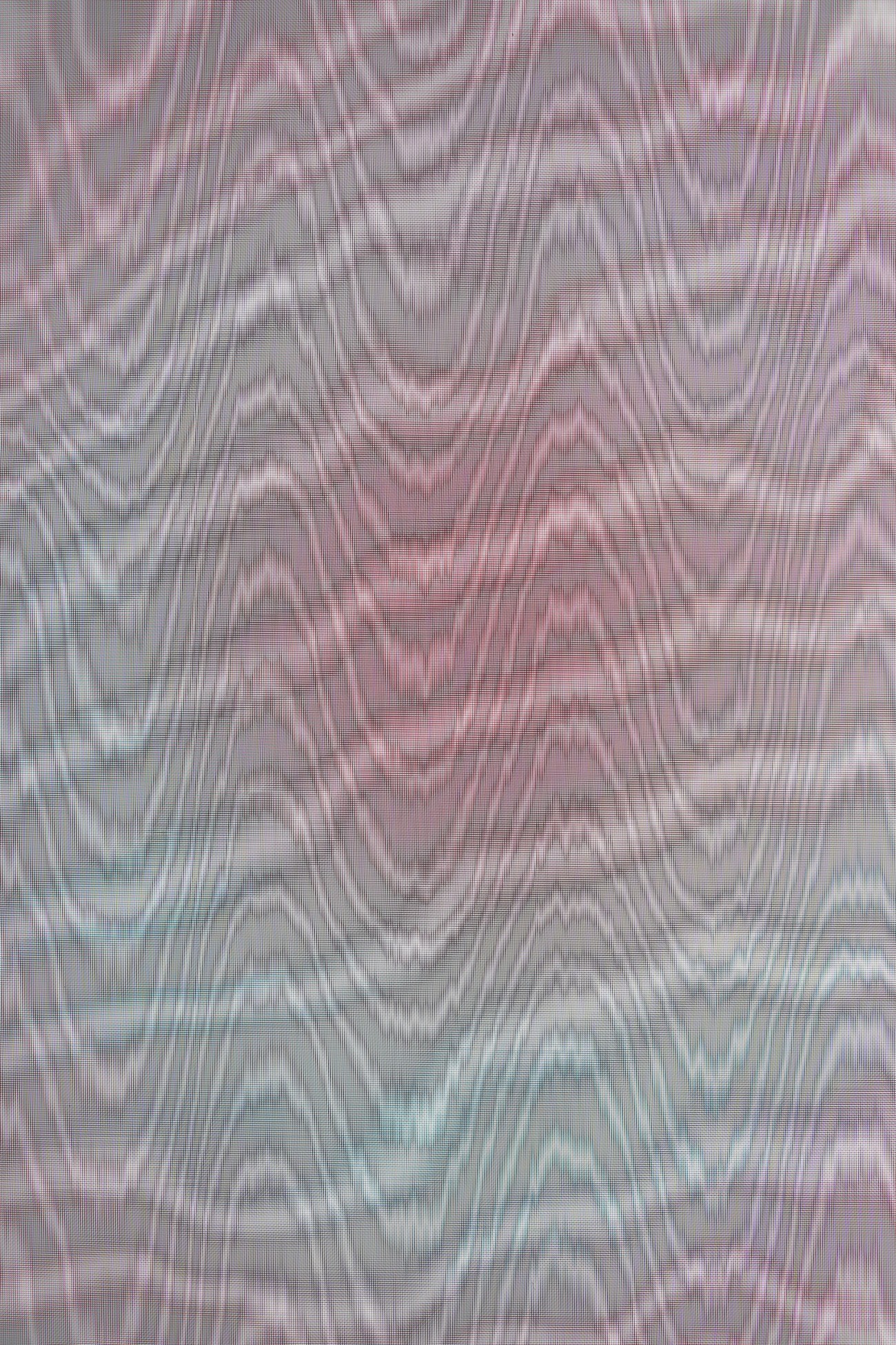 干渉縞の模様と、光源と撮影機材との干渉による色彩。これらによって生じる造形は、ときに、激しく、遠近、明滅、振動などの錯視効果を生じ、鑑賞者の知覚に挑みかかります。