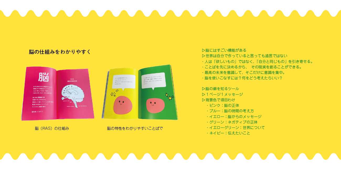 ぺらっと本を開くことで、明るくポップな世界。そーだったぁ、よしっ!さぁ、うんっ!!と思える本を目指しました。