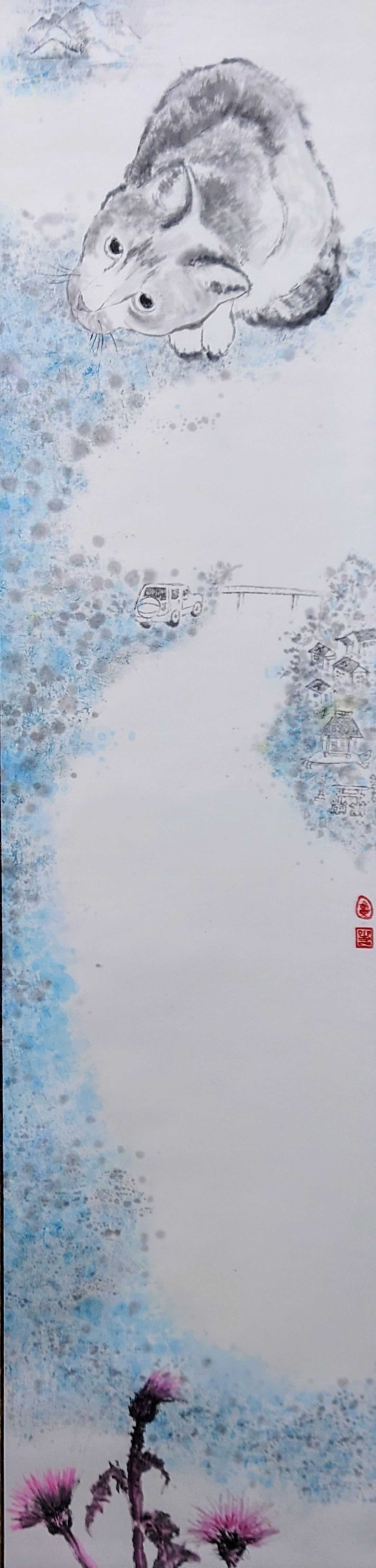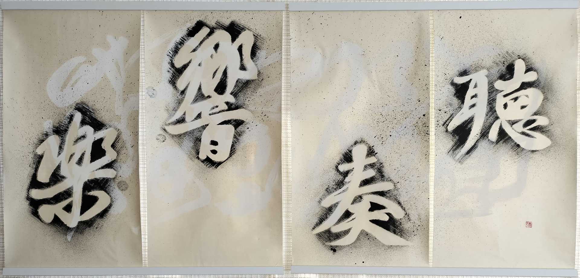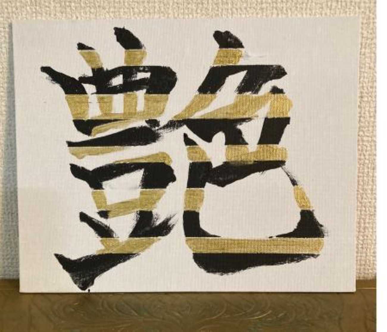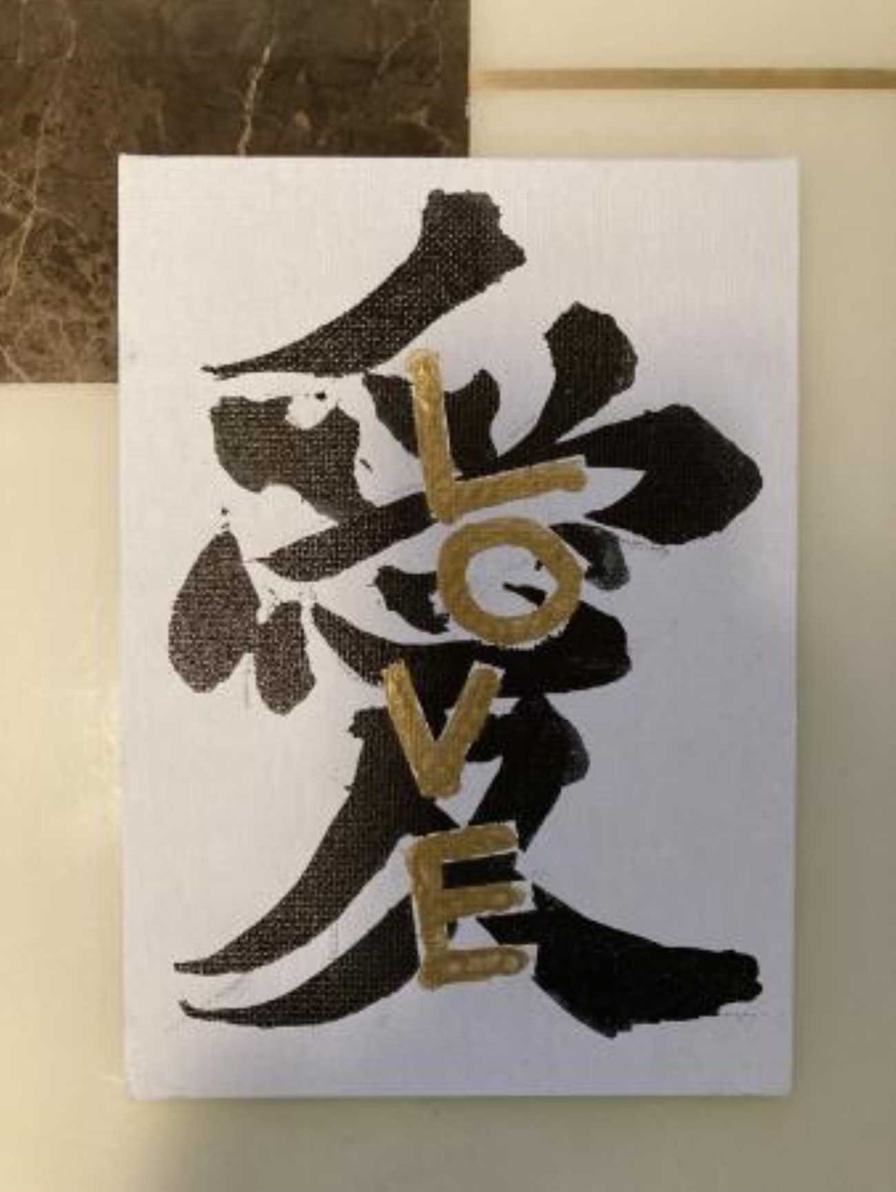 生活空間の中に文字は溢れている。気になる文字や好きな言葉など人それぞれあると思うが、文字や言葉の持つ意味合いから受ける力や影響は大きい。そんな気になる言葉を日常の中にということで、作品には、飾れるように軽くて丈夫なキャンバスを使用した。通常、字の上に字を重ねることはできるが、中に入れこむことは難しい。作品ではマスキングテープを使って再現した。絵画と書の要素を交えた作品を大好きな画家「Alan」の作品からインスプレーションを受け、制作にあたった。