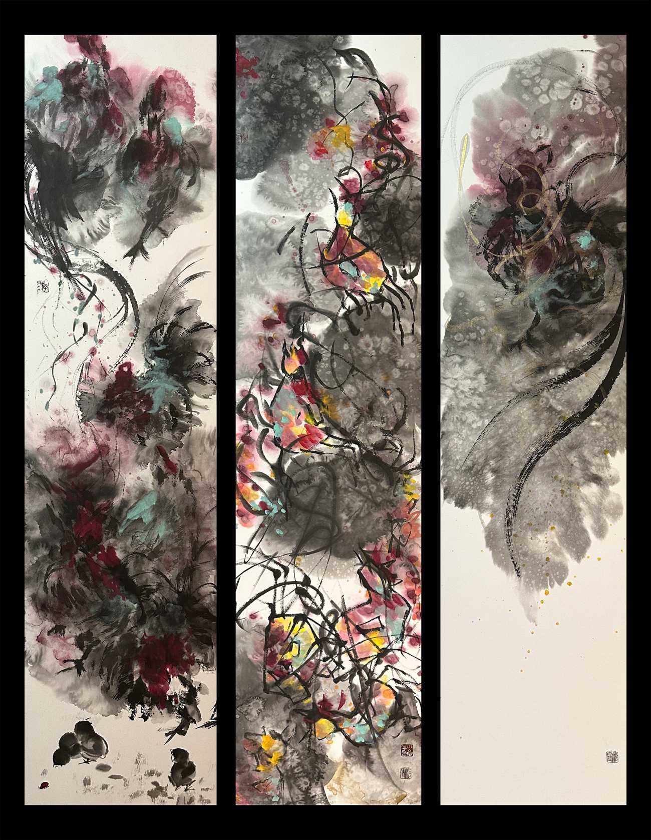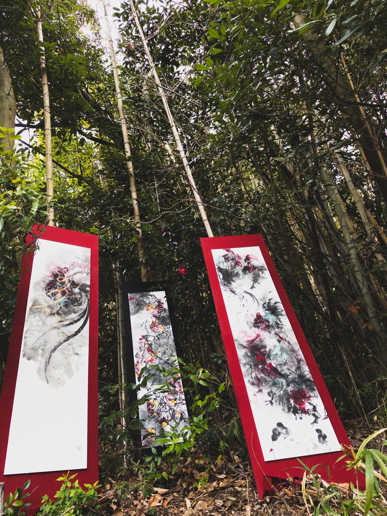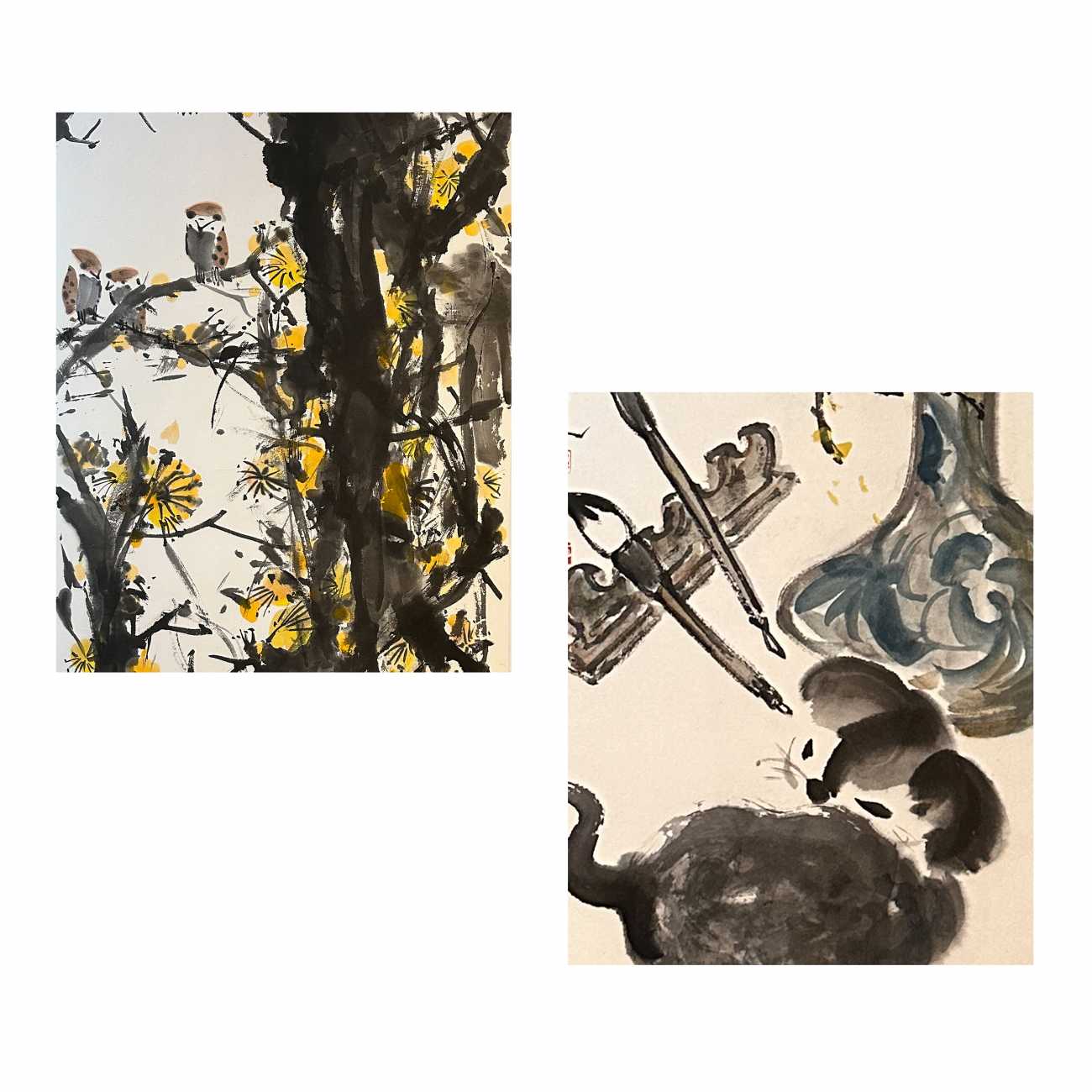 左作品「狗子春眠圖」 右作品「aron、koron、夢ニカタラク」