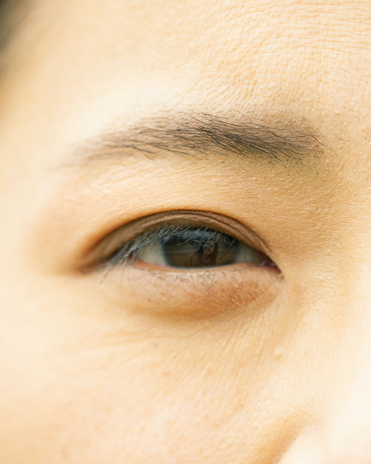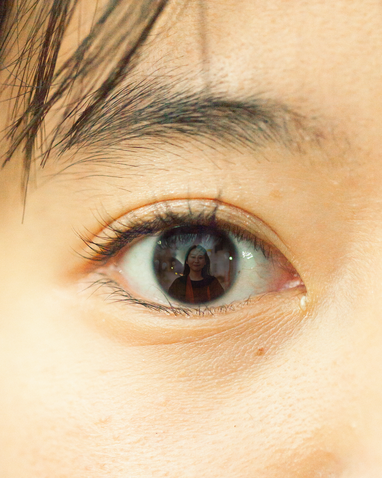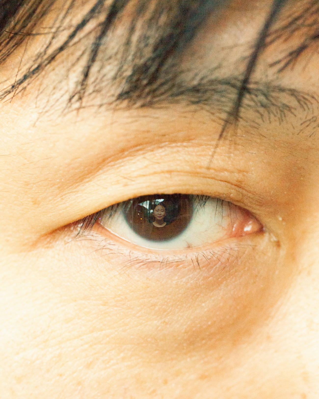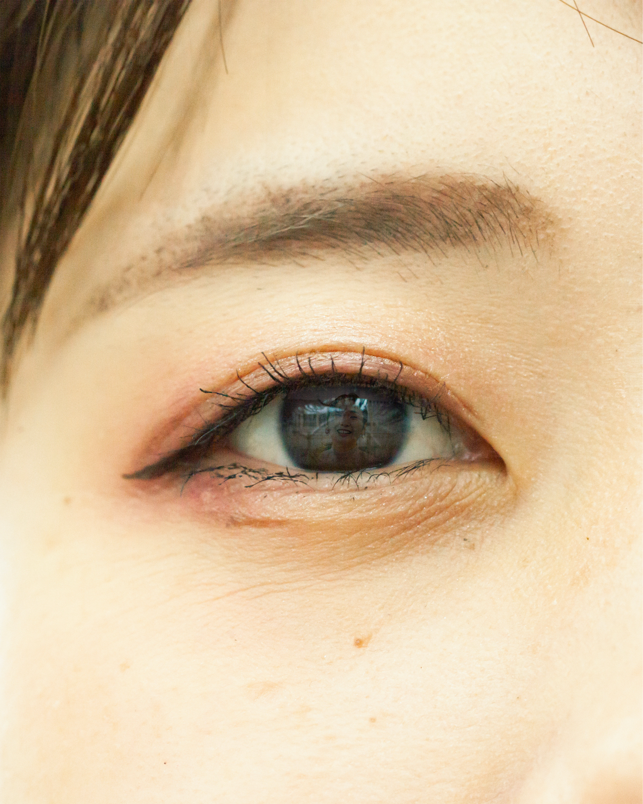 人物写真で見かける「瞳への映り込み」から発想を展開し、親しい間柄から初対面まで様々な12名のクローズアップされた目元と、カメラを渡し自由に撮ってもらった私自身の姿を組み合わせました。