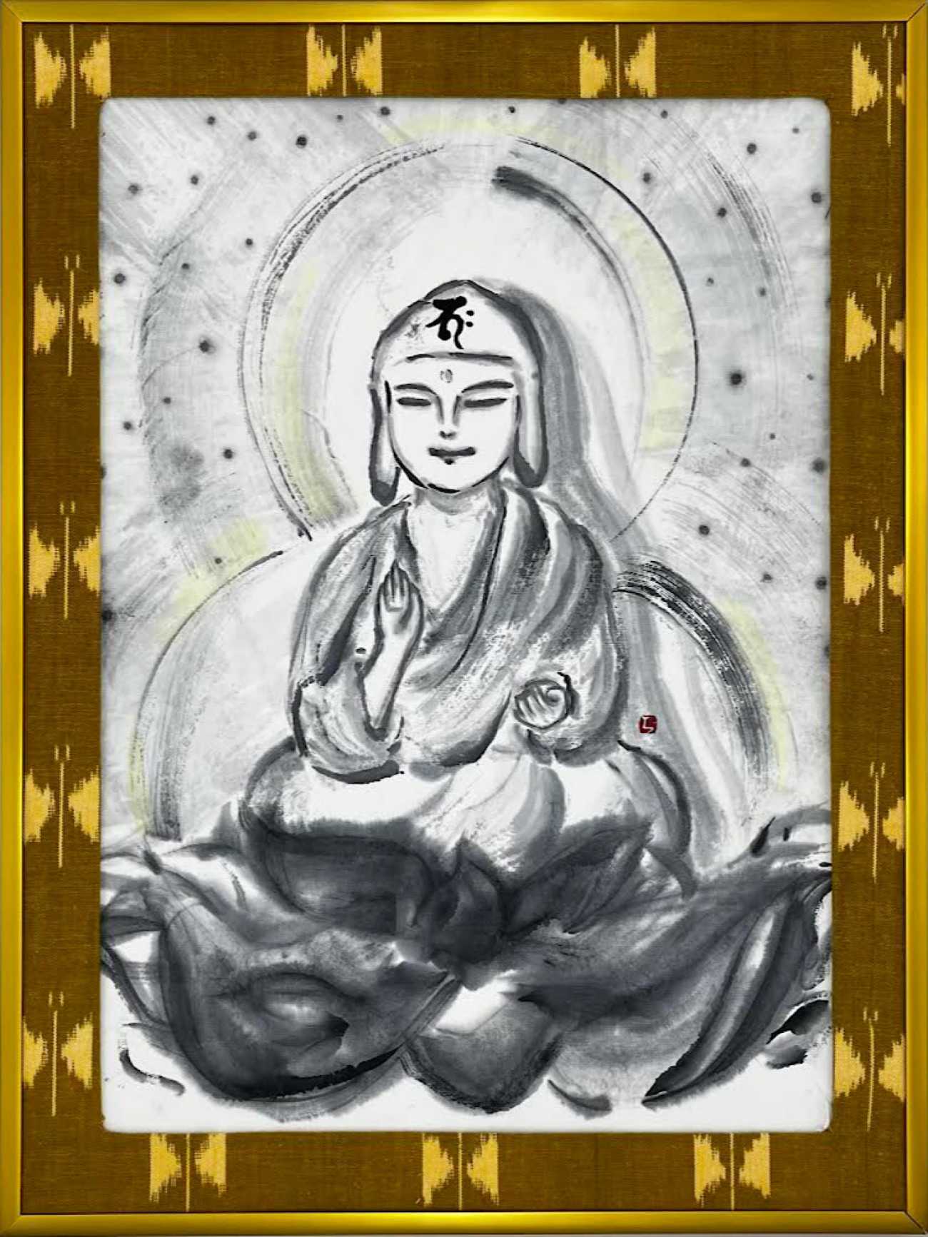 自分自身が困難なとき仏教や仏教美術を学ぶことで救われ、水墨画で仏画や平和を表現できたらという思いで大学の門をたたきました。