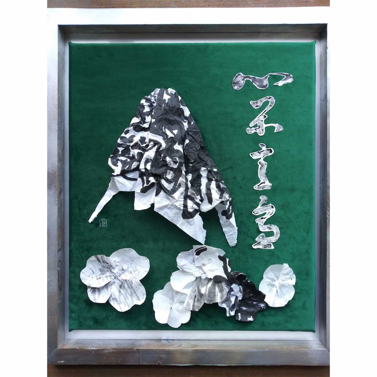 back 美術科 - 書画コース 眞田 としこ 「心閑意適」 書と毎日見える富士を結び付けたい思いがあった。夏の富士は、心情を四字熟語で表し、視覚で、夏山の山肌を練習紙を絞り凹凸で表した。下部の花は、太宰治『富嶽百景』の一文にある月見草を模している。 「心閑意適」 「滴水成氷」 X Facebook LINE