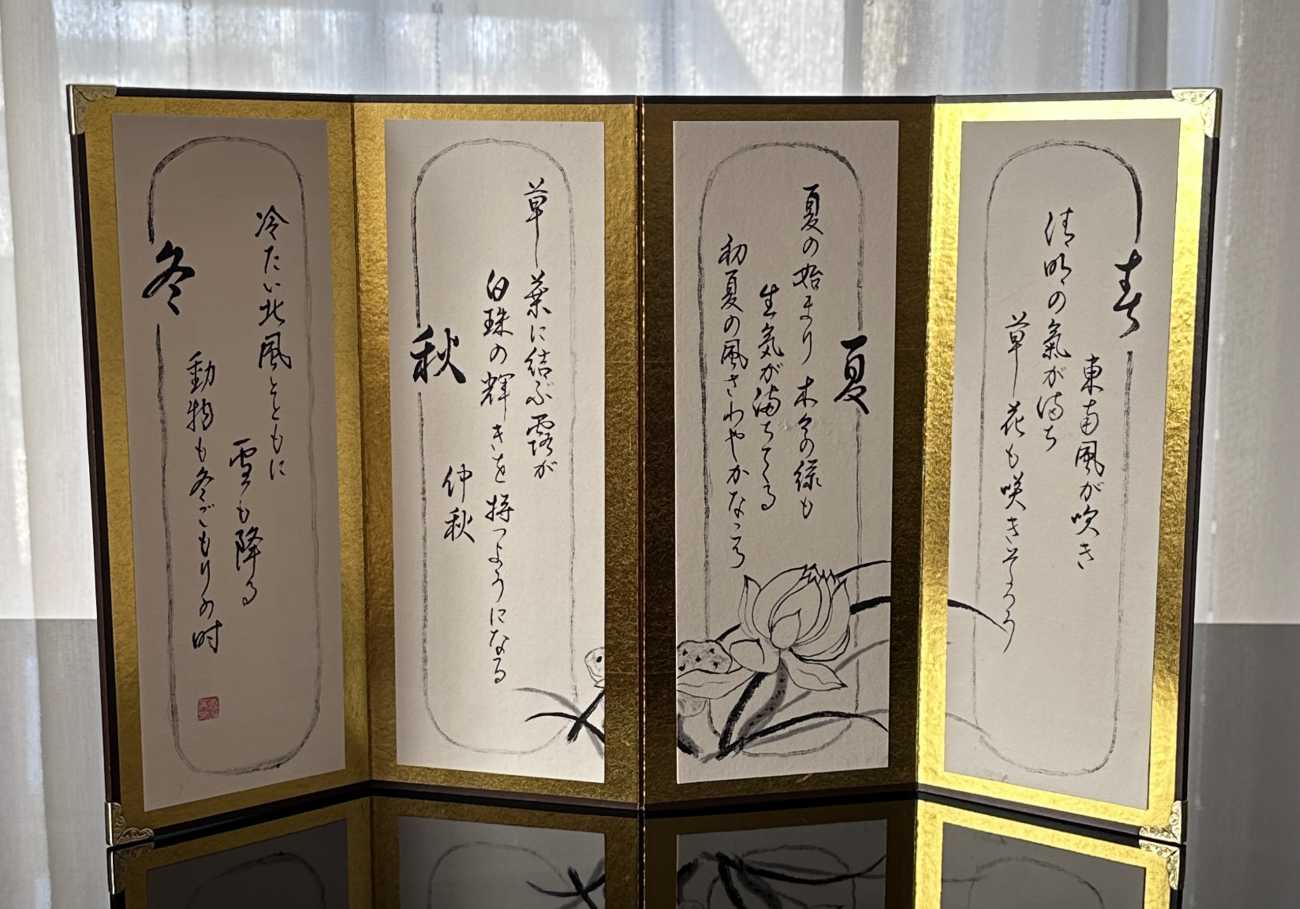 back 美術科 - 書画コース 伊勢田 恵美子 「春の宵」 日本酒ラベル(獺祭、十四代、八海山) 行灯(春宵値一刻千金、春花秋月、宴、楽) 宵に明かりを灯し、少し肌寒い中で笑顔溢れる一時。美味しいお酒を友と楽しむ、そんな場面をイメージして制作しました。 「春の宵」 「春の宵」 「四季の移り」 「西山」 「静寂」 X Facebook LINE
