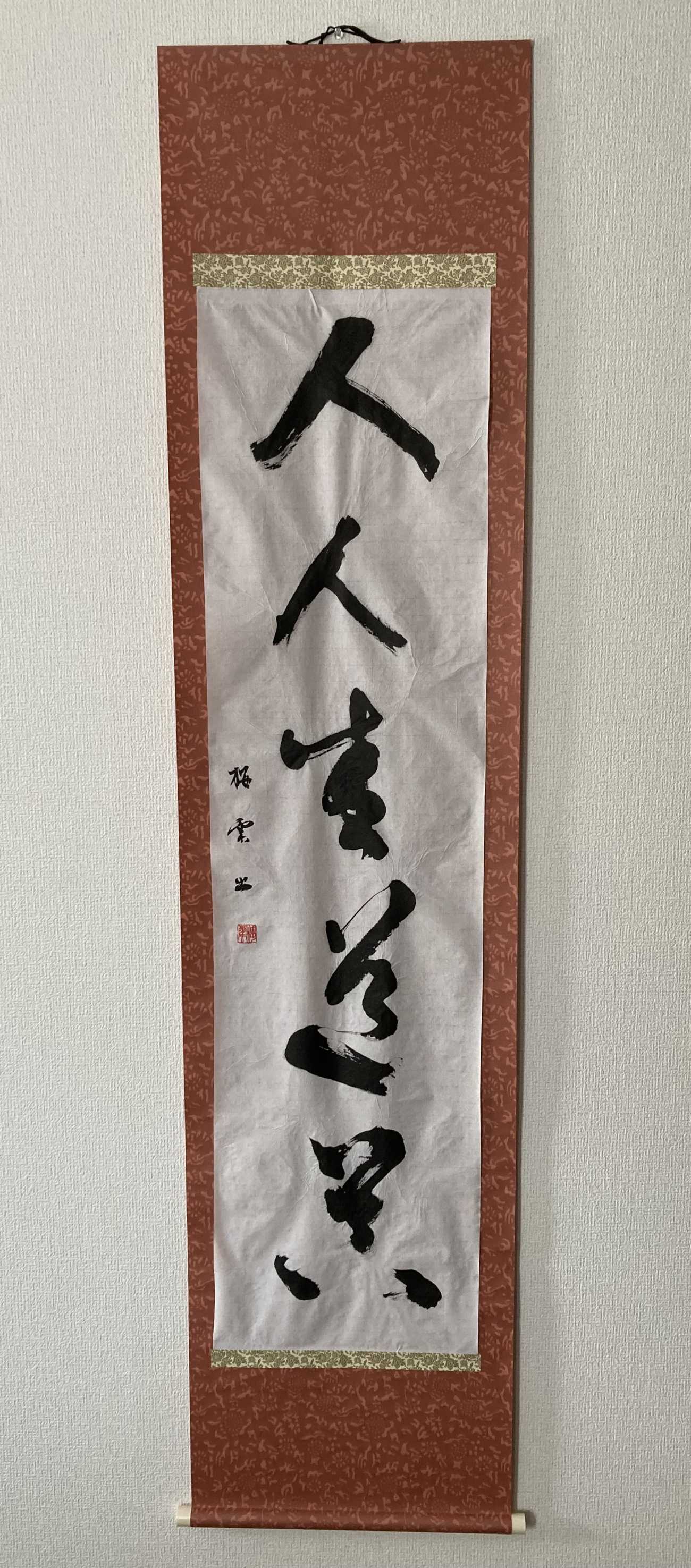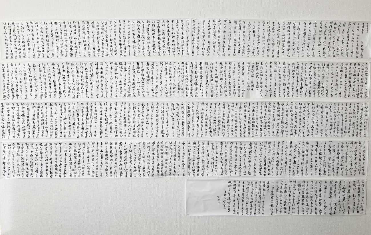 back 美術科 - 書画コース 浜本 あゆさ 書譜を学ぶ 孫過庭の書譜を原寸臨書しました。長文のため業者には出さずに、自分で手作りで巻子を作りました。裏打ちはアイロンで行う簡易的な裏打ちに挑戦し、数カ所失敗してしまいましたが、何とかそれっぽく形にすることができたように思います。原寸臨書にも初めて挑戦し、良い学びとなりました。 書譜を学ぶ 書譜の原寸臨書 ‐全臨‐ 書譜の原寸臨書のアップ写真 手作り巻子 「人人悉道器」(にんにんことごとくどうきなり)禅語 「放下着」(ほうげじゃく)禅語 「看脚下」(きゃっかをみよ)禅語 X Facebook LINE