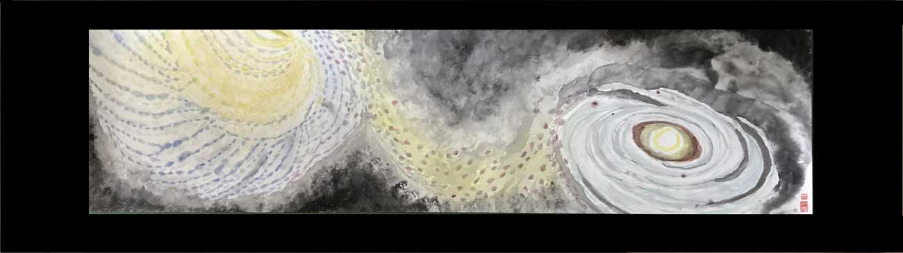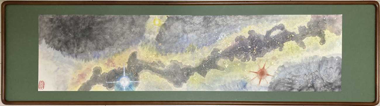 back 美術科 - 書画コース 糠塚 菜津子 「天の川と冬の大三角形」 2023年11月29日午前1時に観た「天の川と冬の大三角形」を制作した。光り輝くシリウス(おおいぬ座)は大きめに描き、周りを青く光らせた。ベテルギウス(オリオン座)は燃え尽きるオレンジに描き、プロキオン(こいぬ座)は小さく黄色味がかる色に描いた。周りの星雲は時間をかけてタッピングだけで柔らかく表現した。 「天の川と冬の大三角形」 「アンドロメダ銀河 Vs 天の川銀河」 「混沌そして平穏 ー波ー」 「混沌 ー波ー」 X Facebook LINE