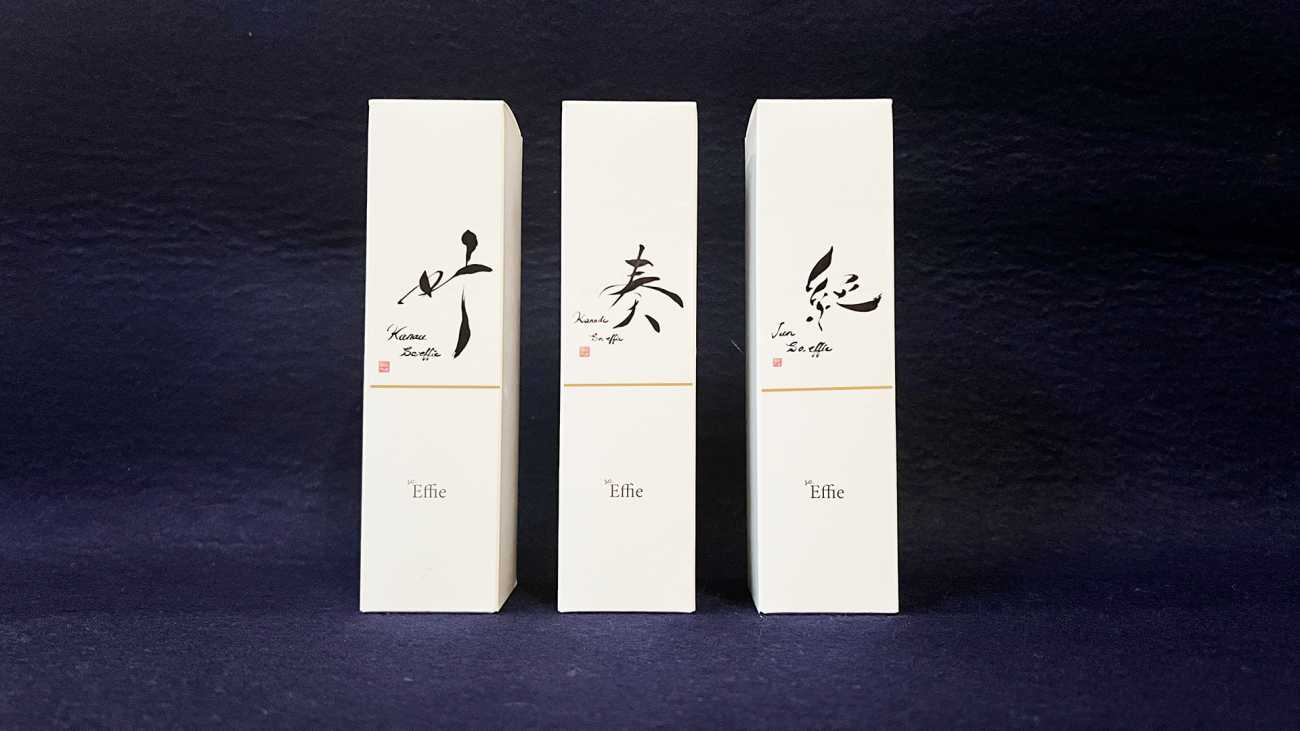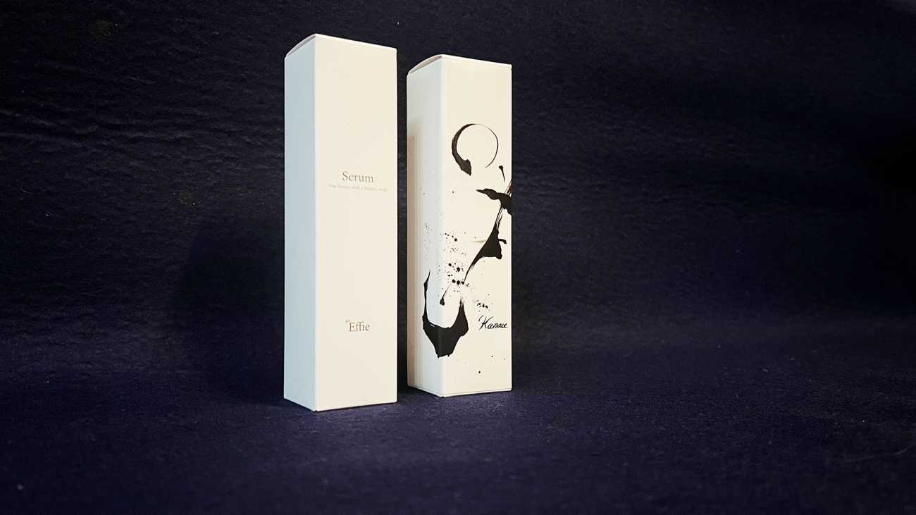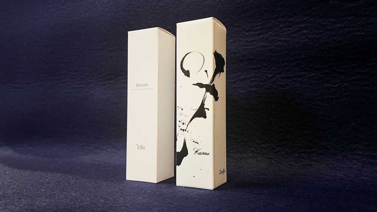 back 美術科 - 書画コース 藤本 栄大 「叶う」 書とデザインというテーマで、化粧品のもつ美意識と、書が有する美の表現をかけあわせた作品を作ることを目的とした。私の経営する会社で制作販売している化粧品ケースに、化粧品のイメージを表現する漢字一文字を表現したいと考え作画した。テーマの文字は「叶」。この化粧品を使用することで自分の望みを叶えるというメッセージを込めた。墨象的な表現でパッケージ全体を帯状に包み込むイメージで作成した。 「叶う」 「叶う」 「叶う」 「so.effie」 「叶う」 「so.effieシリーズ」 X Facebook LINE