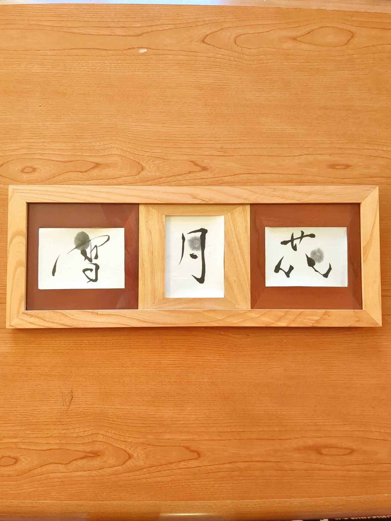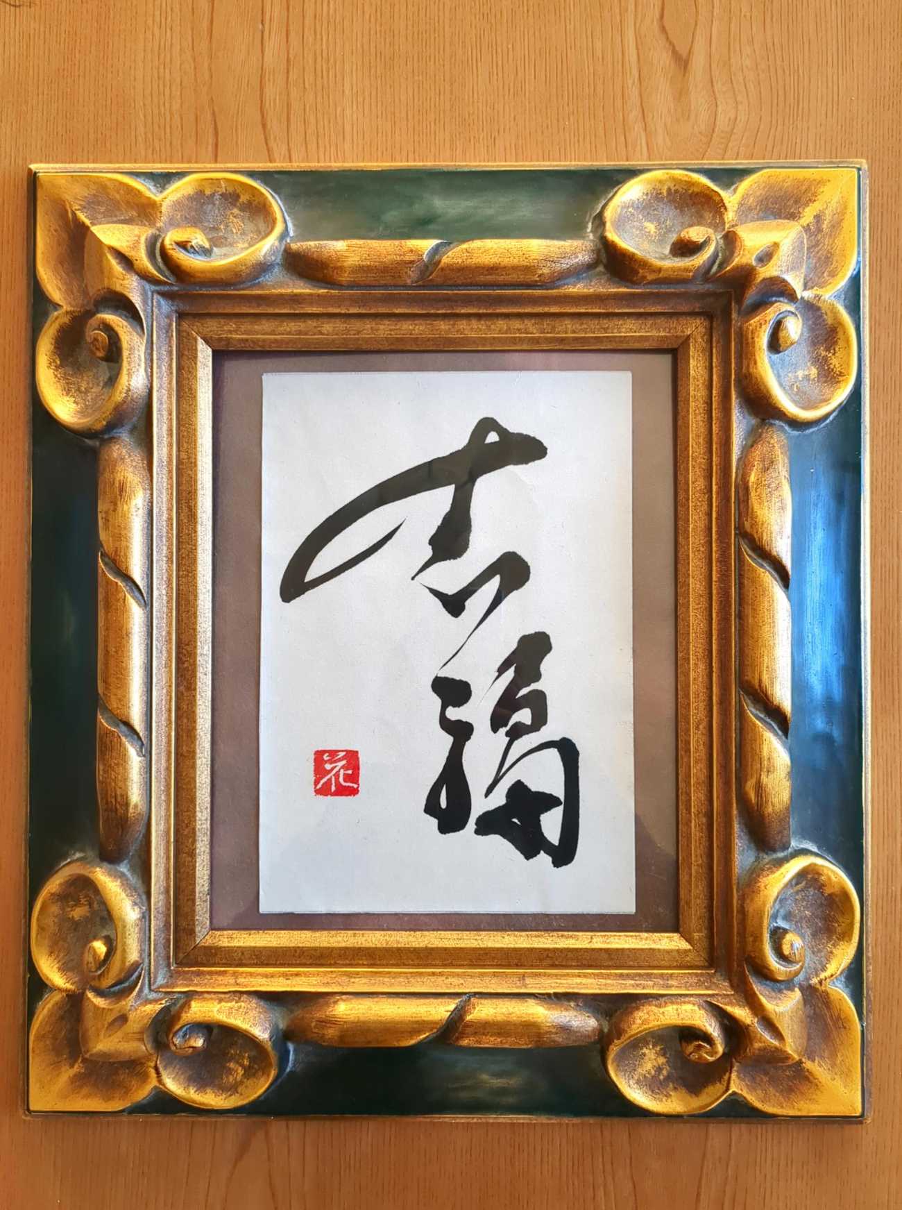 back 美術科 - 書画コース 小野 ちづる 「吉福 ー幸せはここにあるー」 室内装飾のデザインとして、書と額と和紙のコラボレーションをコンセプトとしています。額にもこだわり、アジアンな雰囲気の額にしました。褚遂良を意識して、「吉」の一画目の横画を強調し抑揚のある用筆で表現、また、左側に傾く特徴を活かし「吉」を左側に張り出させ、「福」をその下の右側に配し、余白の左下に印を配することでバランスを取っています。「吉福」とは、「めでたいこと」という意味です。 「吉福 ー幸せはここにあるー」 「雪月花 ー雫と共にー」 「静 ーJapanー」 X Facebook LINE