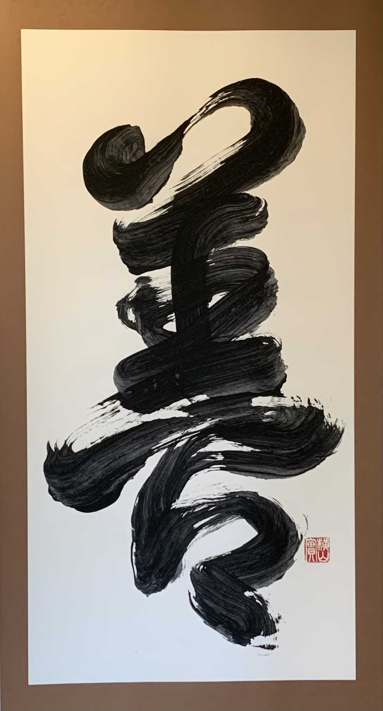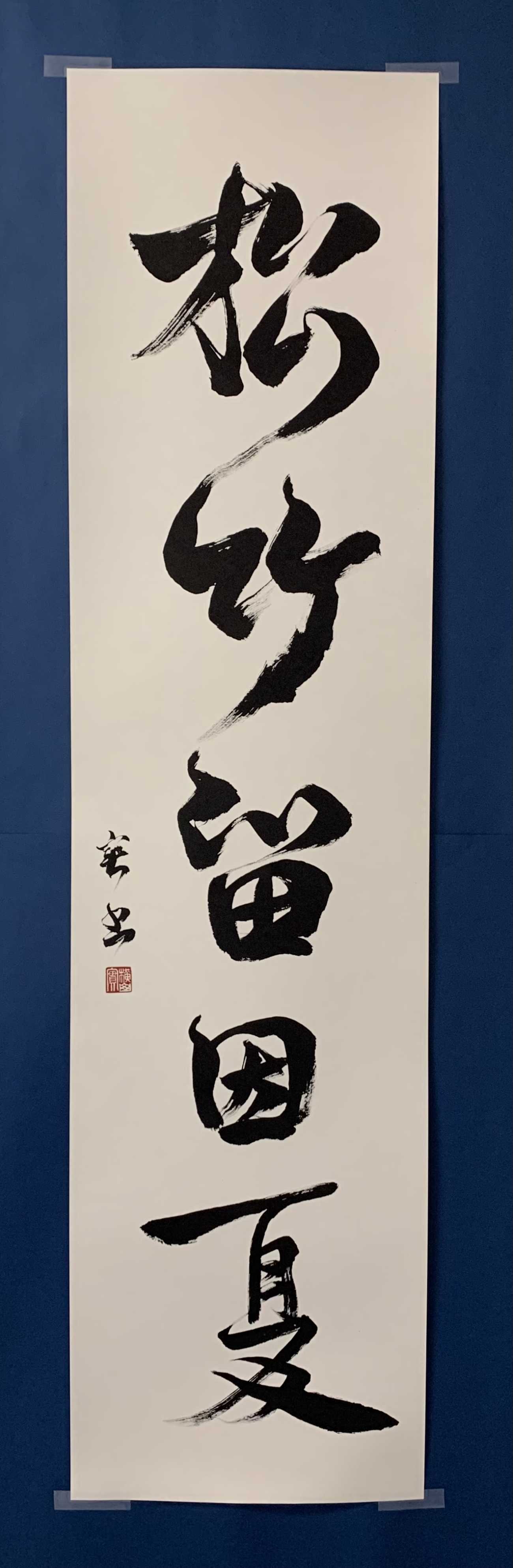 back 美術科 - 書画コース 横山 実 「不易流行」 常に新しくあるためには、同じところに停滞することなく、変わり続けなければならないとする蕉風俳句根幹をなす言葉「不易流行」を、伝統的表現に立脚した書作品の制作に取り組むにあたって、これを書としました。この作品は、サイズ タテ135.0×ヨコ138.0cmで、全紙2枚を縦に配して、ボンド墨を使い、大胆に描いています。線質は、米芾の書風から肥痩を意識するとともに、文字の形態は4文字が同形とならぬように配置しています。 「不易流行」 「善」 「兩三日未解。海岱只尺不能到。焚香而己―米芾臨書ー」 「松竹留因夏ー米芾拡大臨書ー」 「人生貴適意」 X Facebook LINE