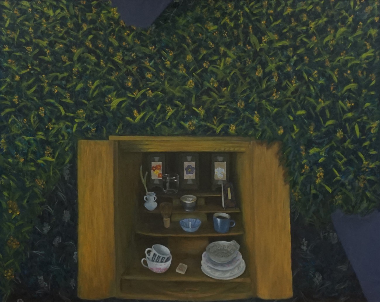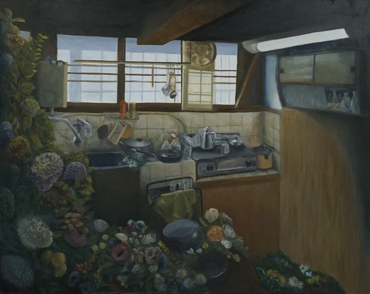 この家の空気感、訪れた時の様子やそこにあった古く雑多なものたち、ひんやりと冷たい床の感覚、台所に差し込む光、住んでいた人たち。そのすべてに花を手向けるような気持ちで描いた不在の記録。