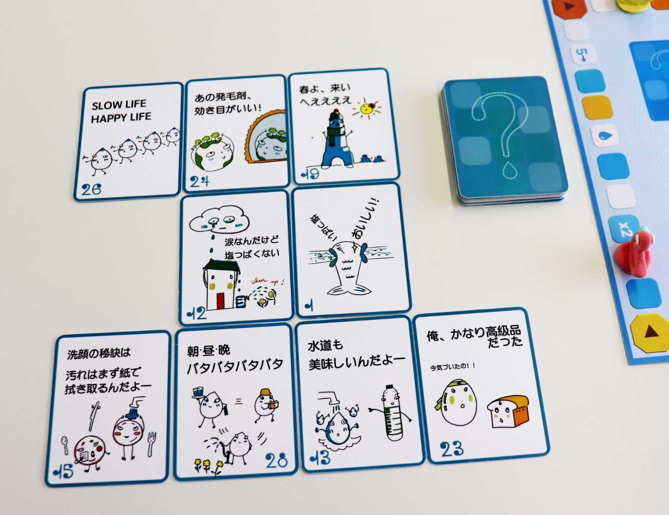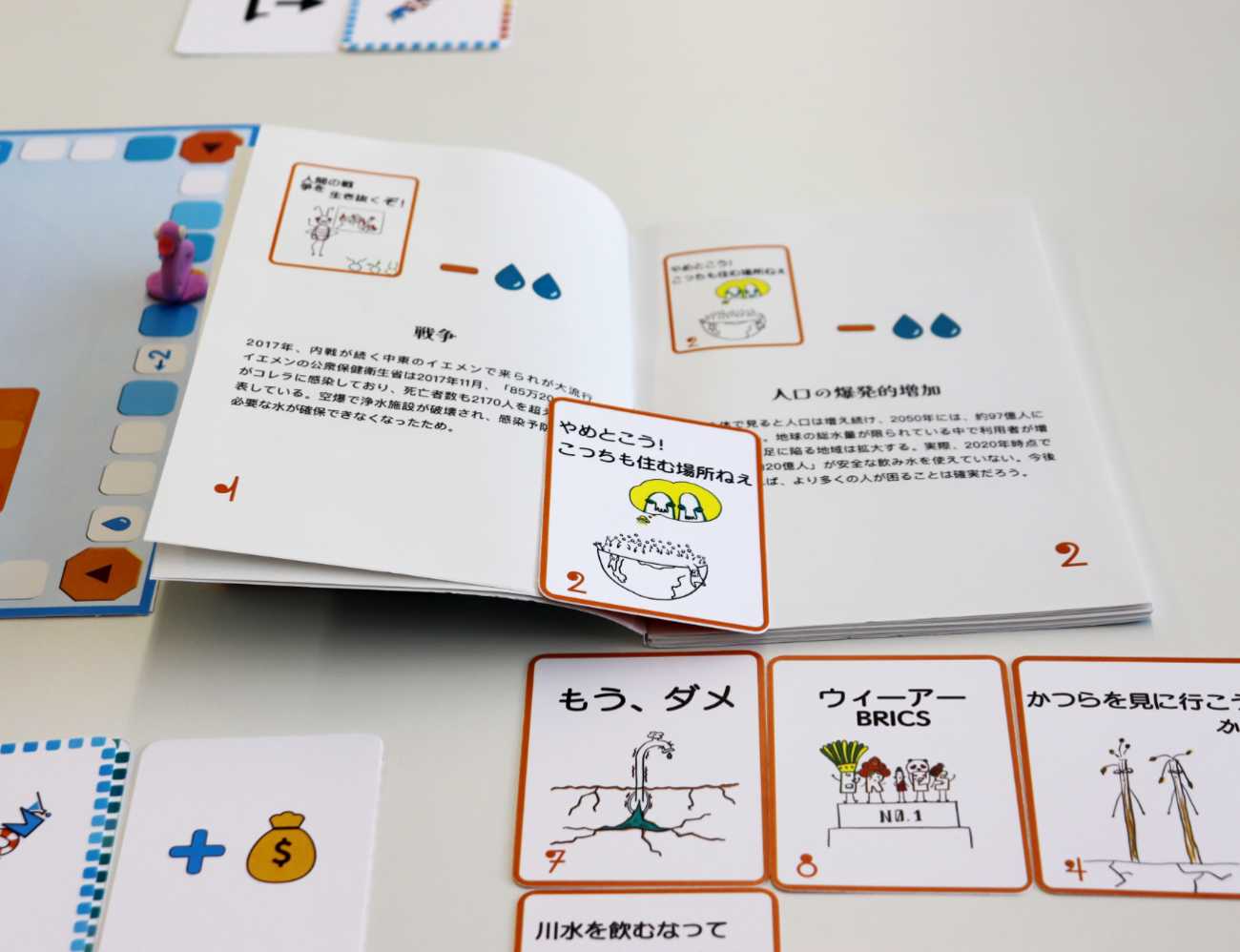 中学校の高学年と高校などの教育の場を想定し、ボードゲームを遊びながら淡水資源に関する課題と、できる対策の情報を提供することを目的とした。