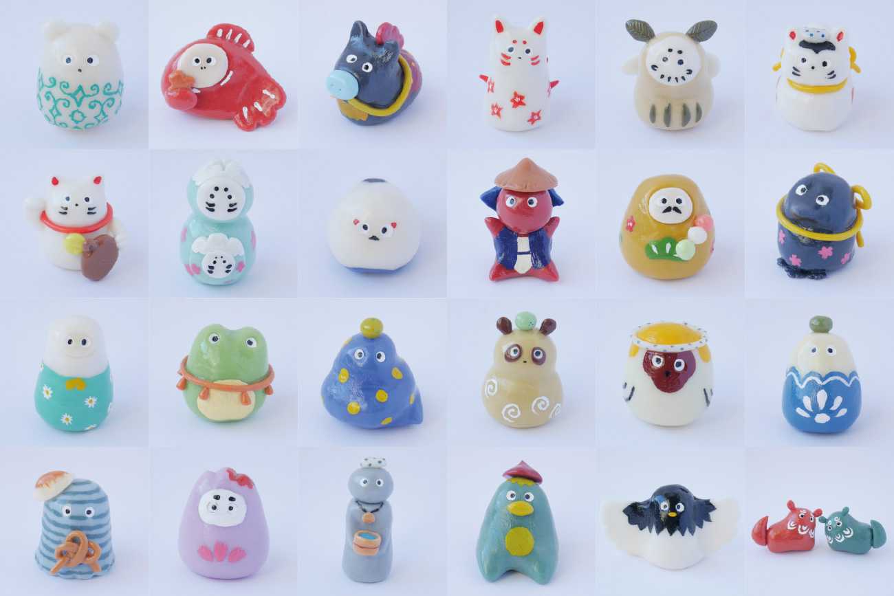 カプセルトイに入っている旅神様人形。各都道府県の伝統工芸や伝説、名産品をモチーフに樹脂粘土で制作。
