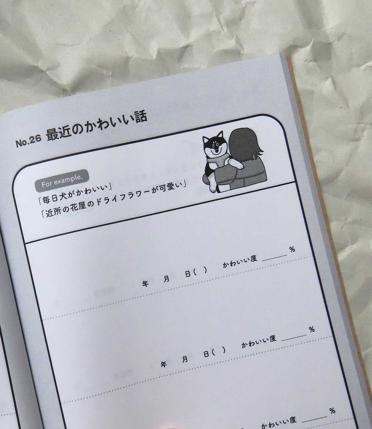 みなさんは最近あった良かったこと・悪かったことを思い出せますか?私が制作したのは「お題式日記帳」です。各ページに「最近あった美味しかった話」「最近あった情けなかった話」などお題を用意しているので、自分の身の回りのことを思い出すツールとして活躍してくれます。ページ上部にあるみんなの例文やイラストも見どころです。