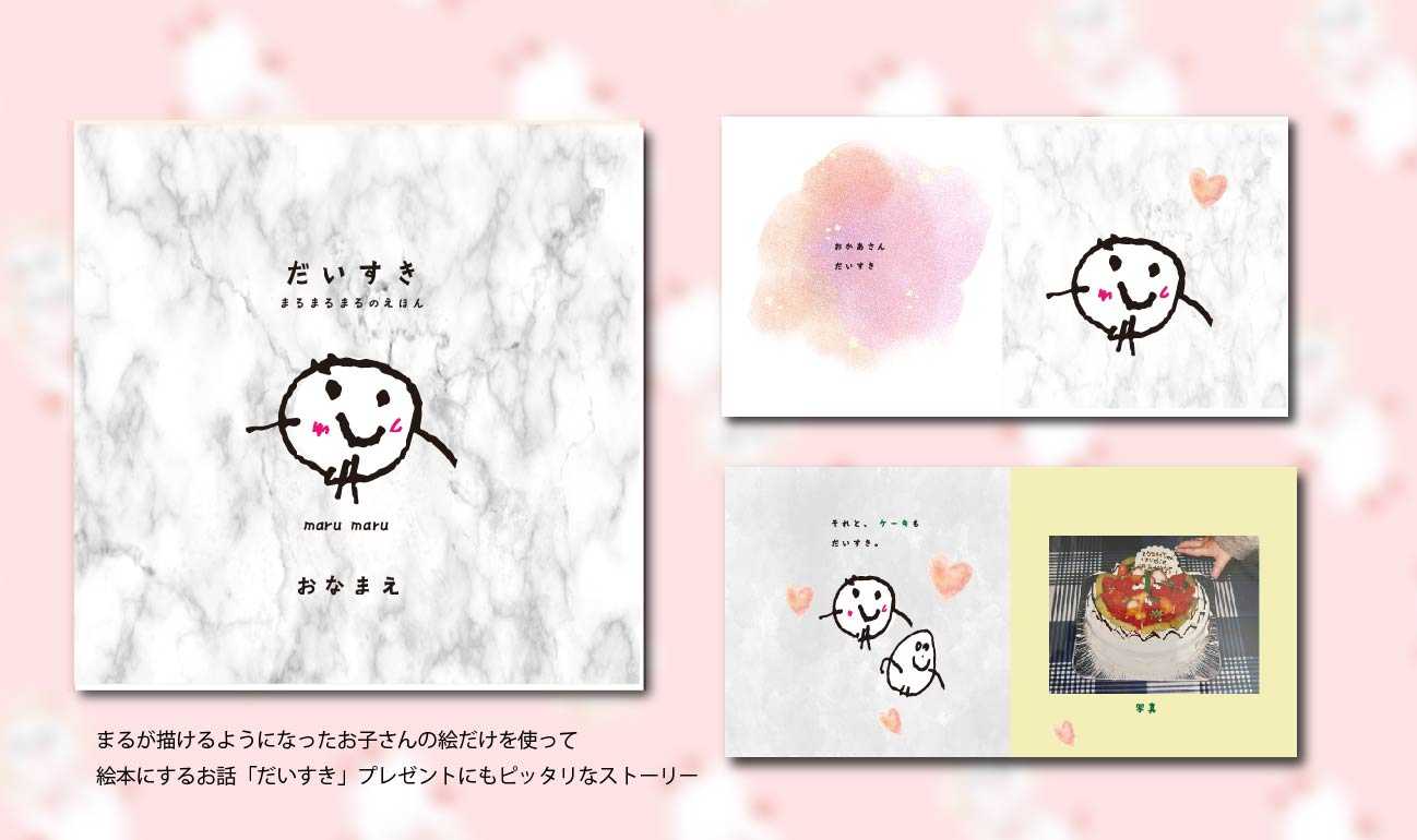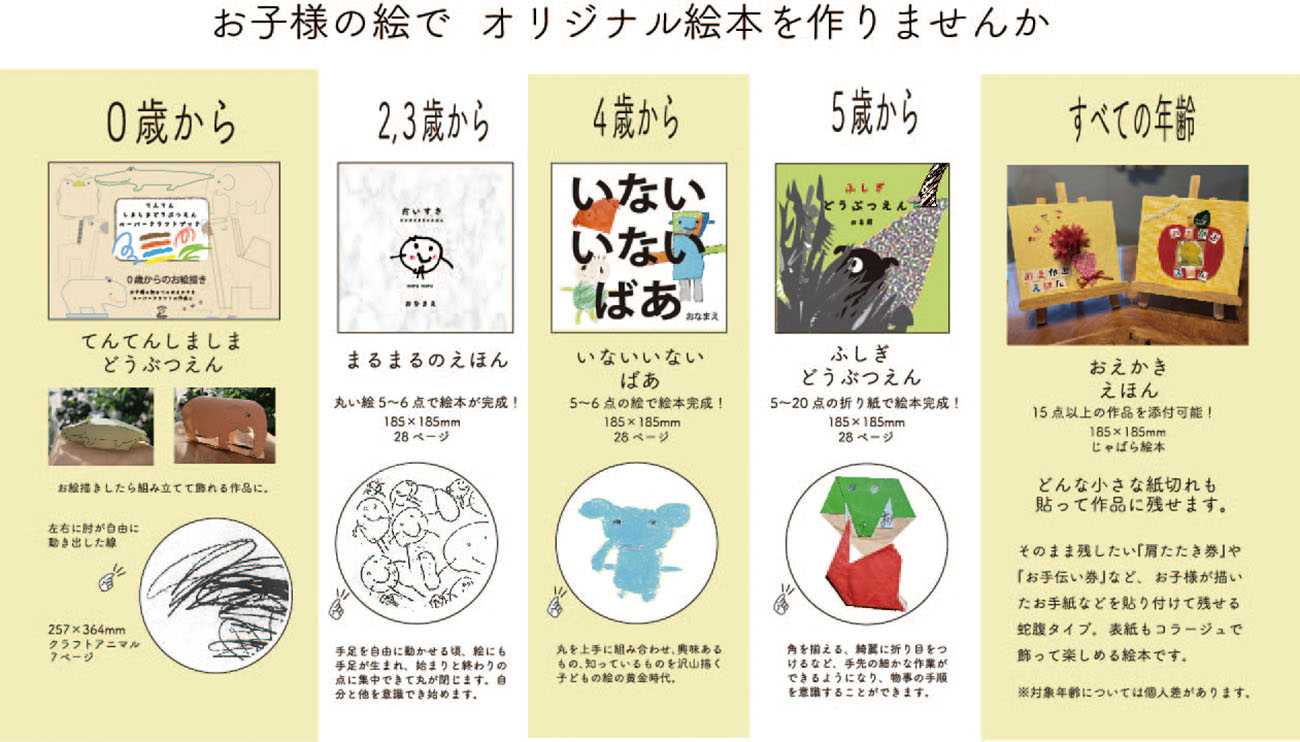 0歳から10歳頃までの成長の過程で子どもが描いた絵の魅力を、一生残る作品にとどめるオーダーメイド絵本の商品サービスの提案。「子どもはみんな芸術家だ。」とピカソはこどもの絵を高く評価したが、現状として子どもの絵の評価は低く見積もられ、また教育的な意味も軽んじられていることに一石を投じることができたらと願いを込めた企画。