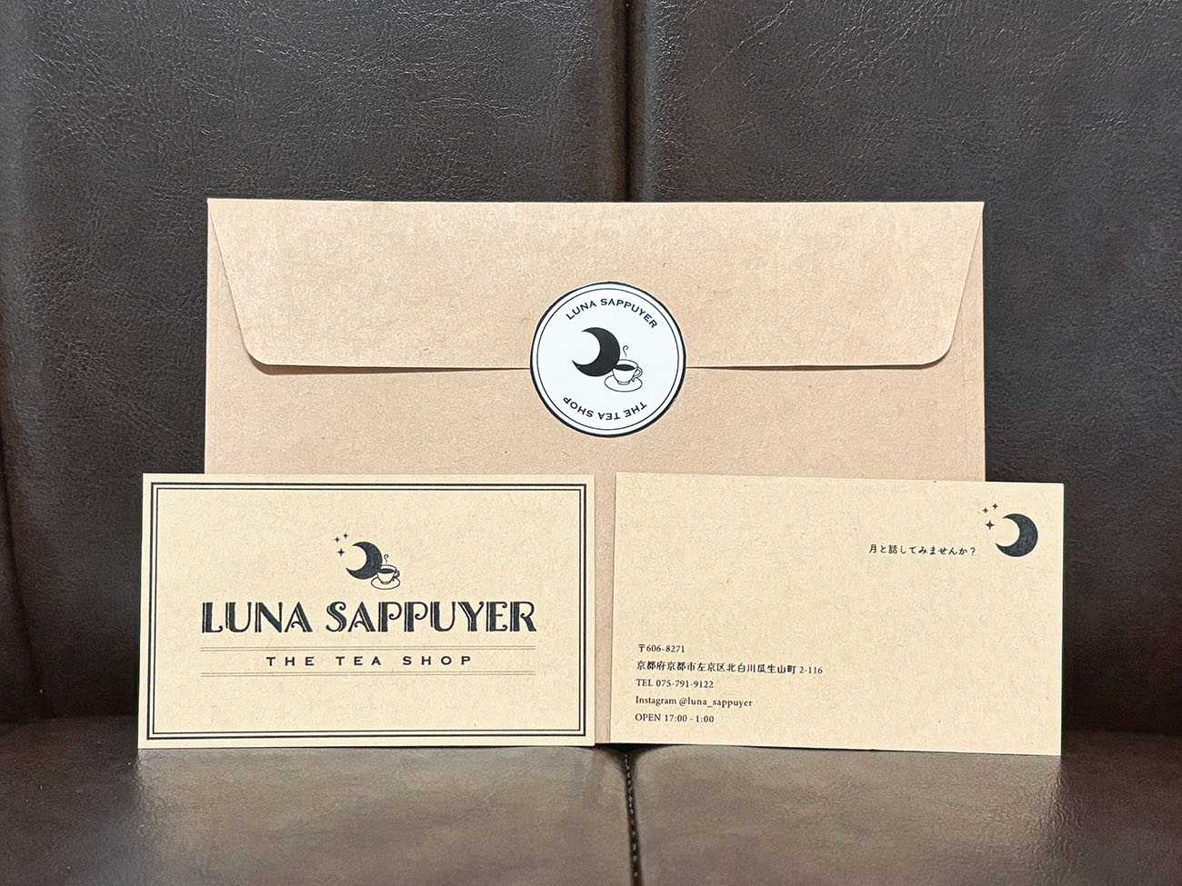 ショップカードの裏面にどういったコンセプトの紅茶専門店なのか?と知ってもらうために、「月と話してみませんか?」とキャッチコピーを入れている。