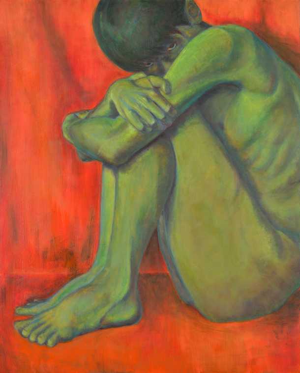 触れる、触れられることが怖い。人の視線、あるいは自分の視線が怖い。傷つきたくない気持ちが、時に拒絶や攻撃性に変わってしまう。そういった自分の中にある、若い痛々しさに嫌気がさすが、そこには生きようとしている身体があり、その身体のことはその渦中にある今しか描けないのかもしれないと思って制作した。
