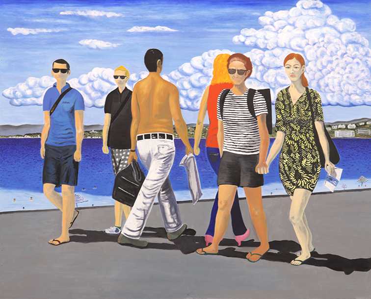 月夜のジャングルでナマケモノが木にぶら下がっている。のんびり動作と愛嬌のある顔で、見る人を和ませてくれる。そんなナマケモノの姿を絵に描いた。ナマケモノは普段から蛾と共生していて、蛾たちを数匹、そして木の枝を這う毛虫も2匹描いた。ナマケモノの体毛の毛並みを表現するのが難しく、何度も白色を塗り重ねていった。最初は口を閉じている絵を描いたが、どうもしっくりこない。ネットでナマケモノを検索すると舌を出している写真を見つけた。これだ、と思い、表現してみた。見る人に安らぎと愛嬌を感じてもらえたら幸いだ。