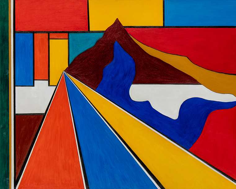 私のテーマである、槍ヶ岳を抽象で描いた。山頂に差す太陽の光と、照らし出される稜線、雲海が生み出すドラマティックな光景を、光と影のコントラストを意識して描いた。