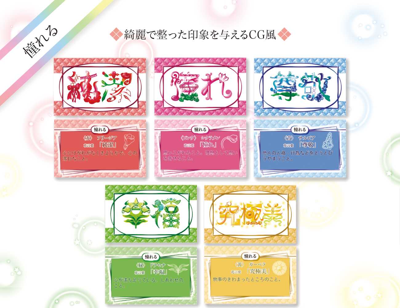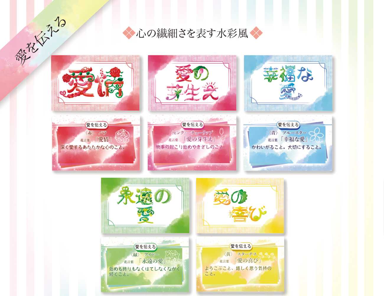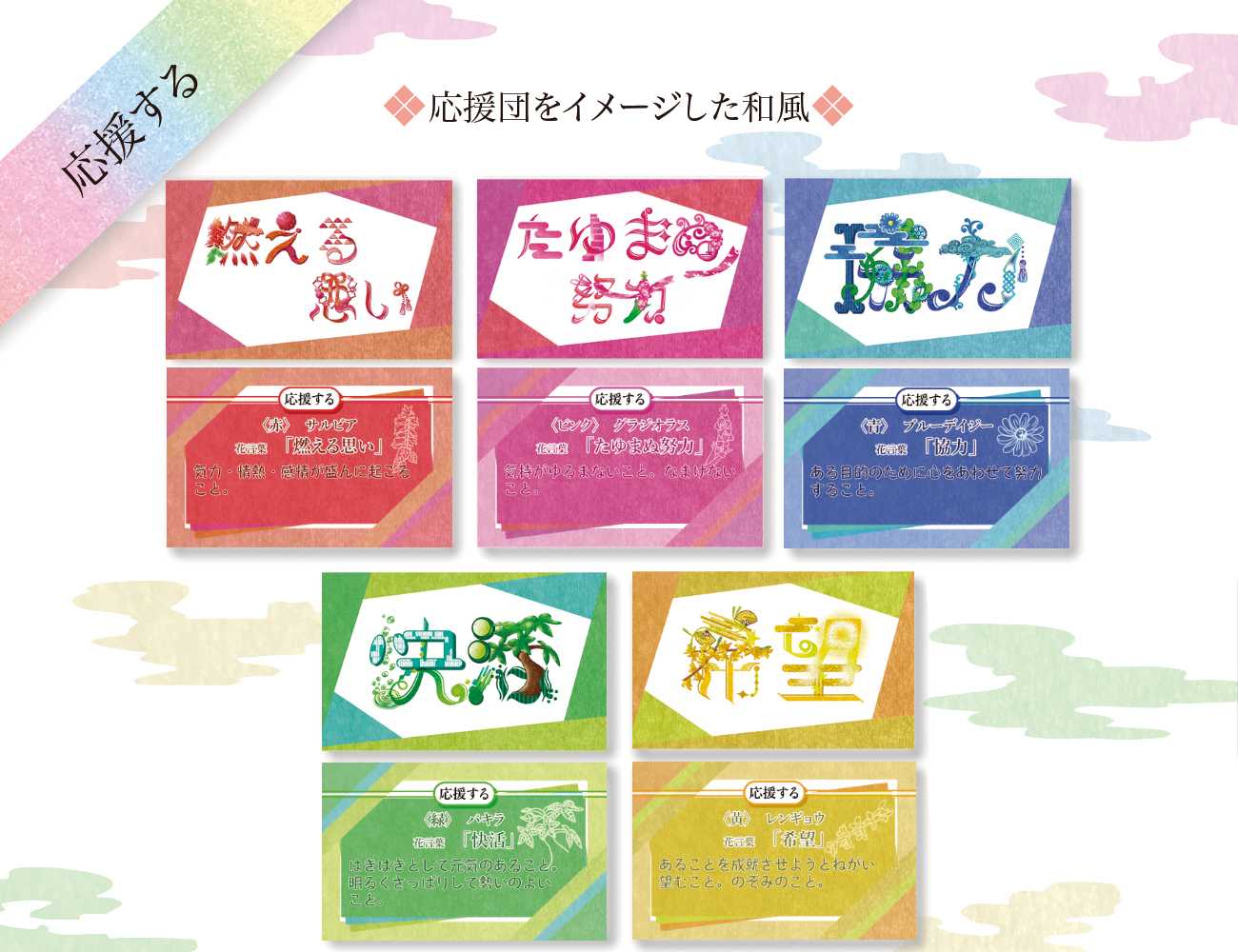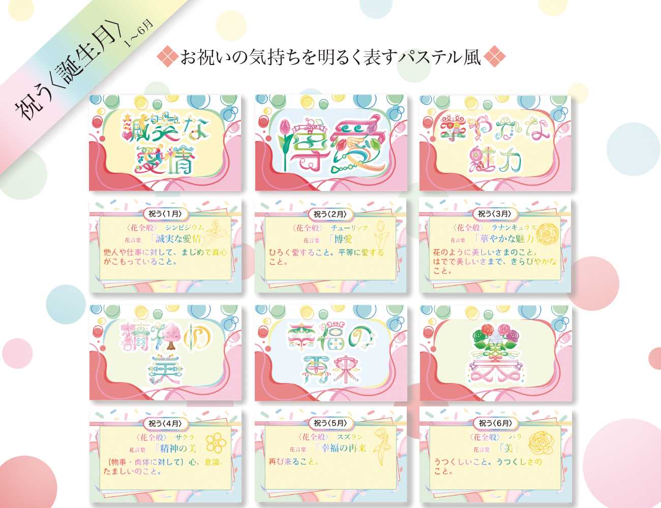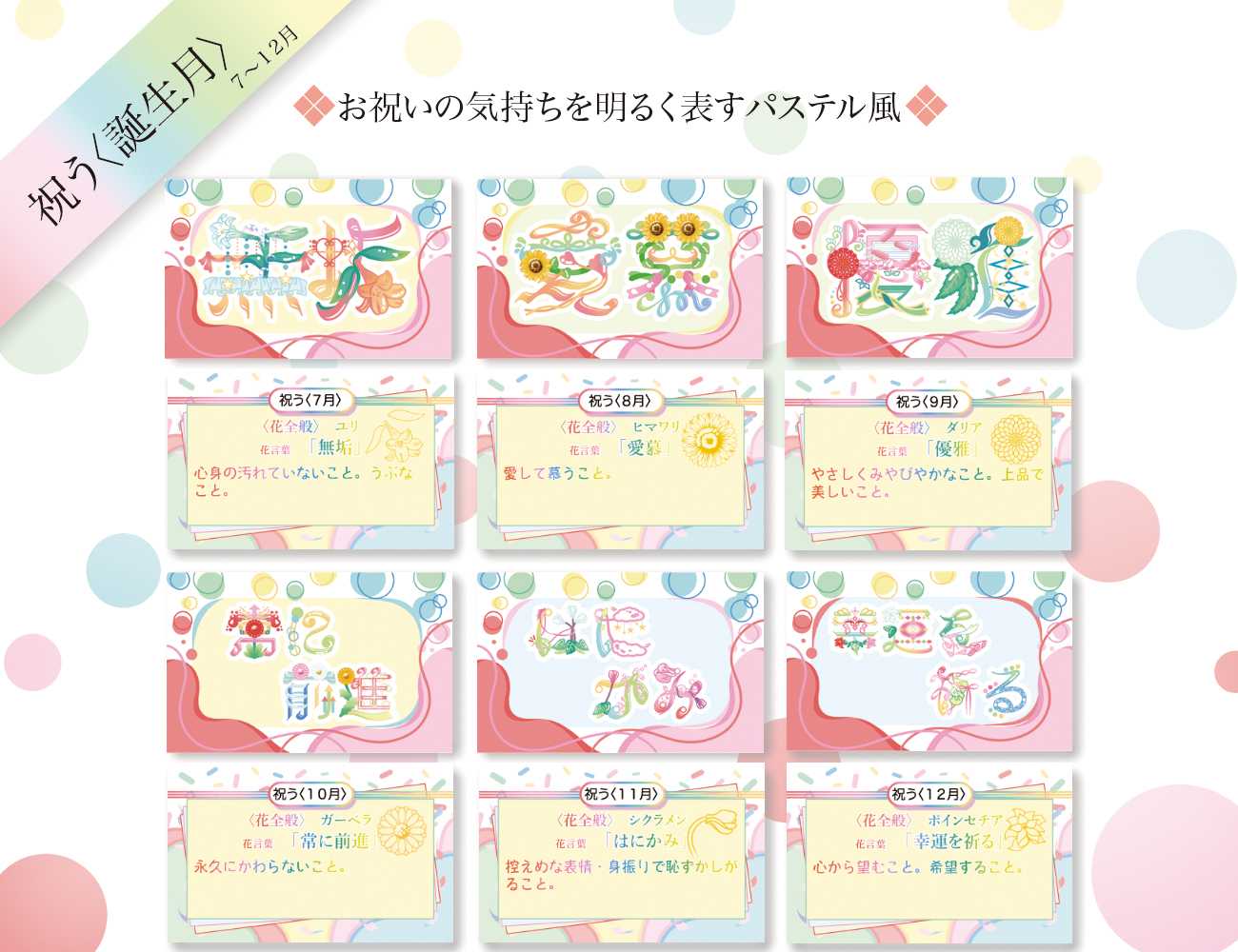 祝う〈誕生月〉のカードは推しの誕生月で選ぶ際に、どの推しのイメージカラーにも合うように5色全てを使用しています。