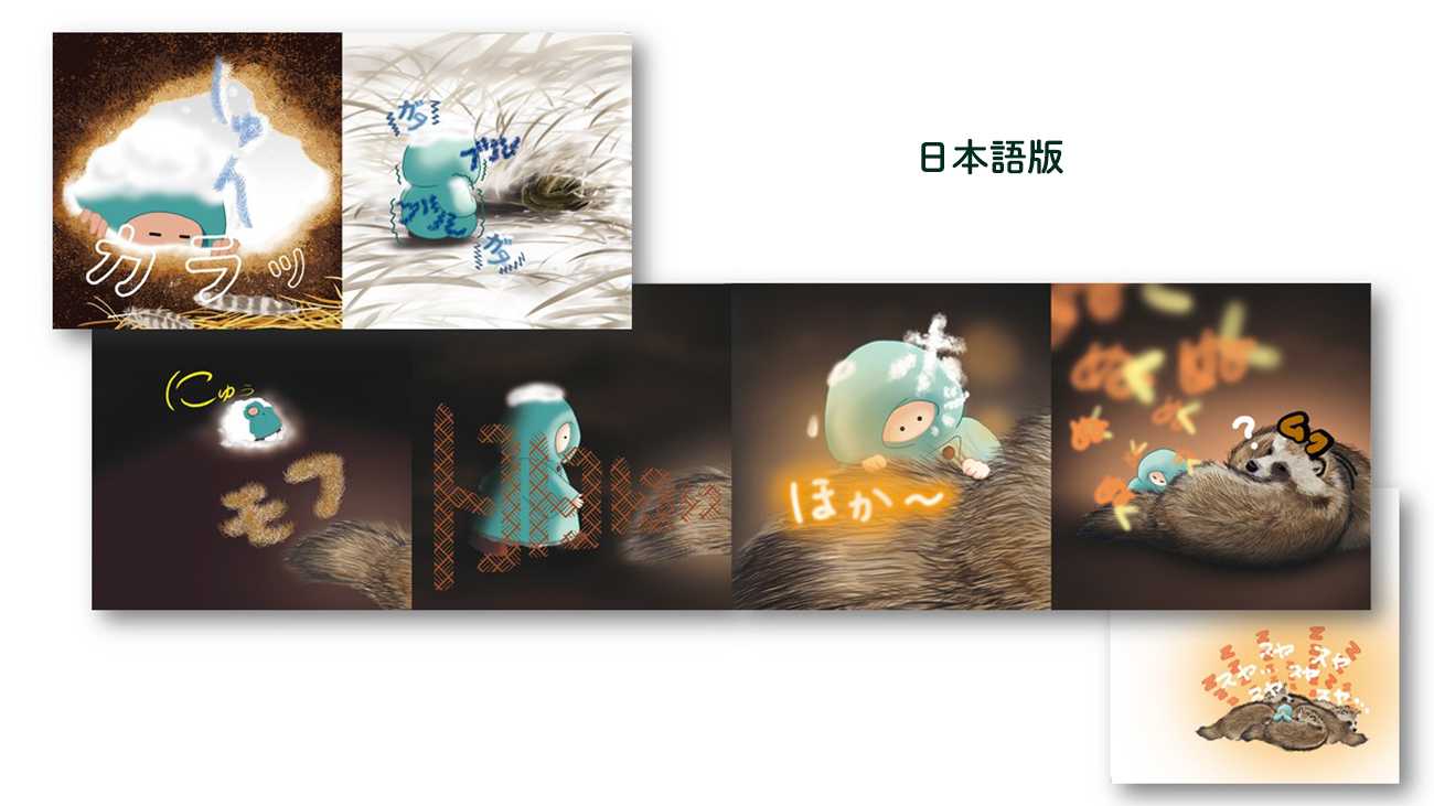 絵本(日本語版・英語版・スペイン語版)/128×128mm 38ページ