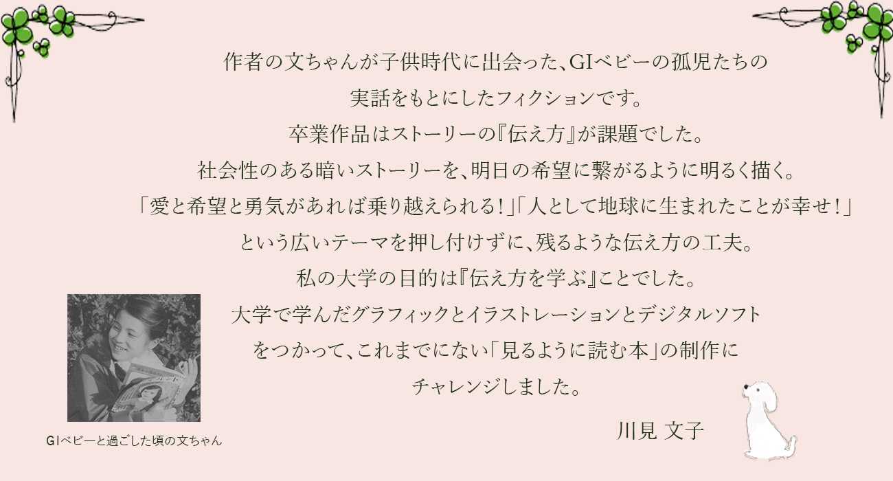 戦後、連合軍が日本に駐留した時代に、外国軍人と日本女性の間に生まれたGIベビ―の孤児のものがたり。親に捨てられ戸籍も国籍もない子供たちが、修道院が運営する孤児院で子供時代を