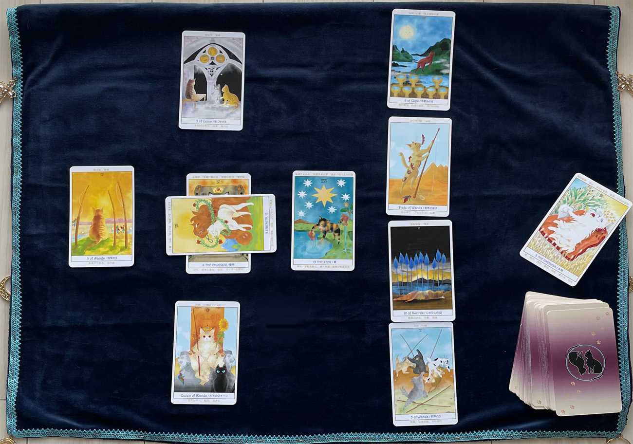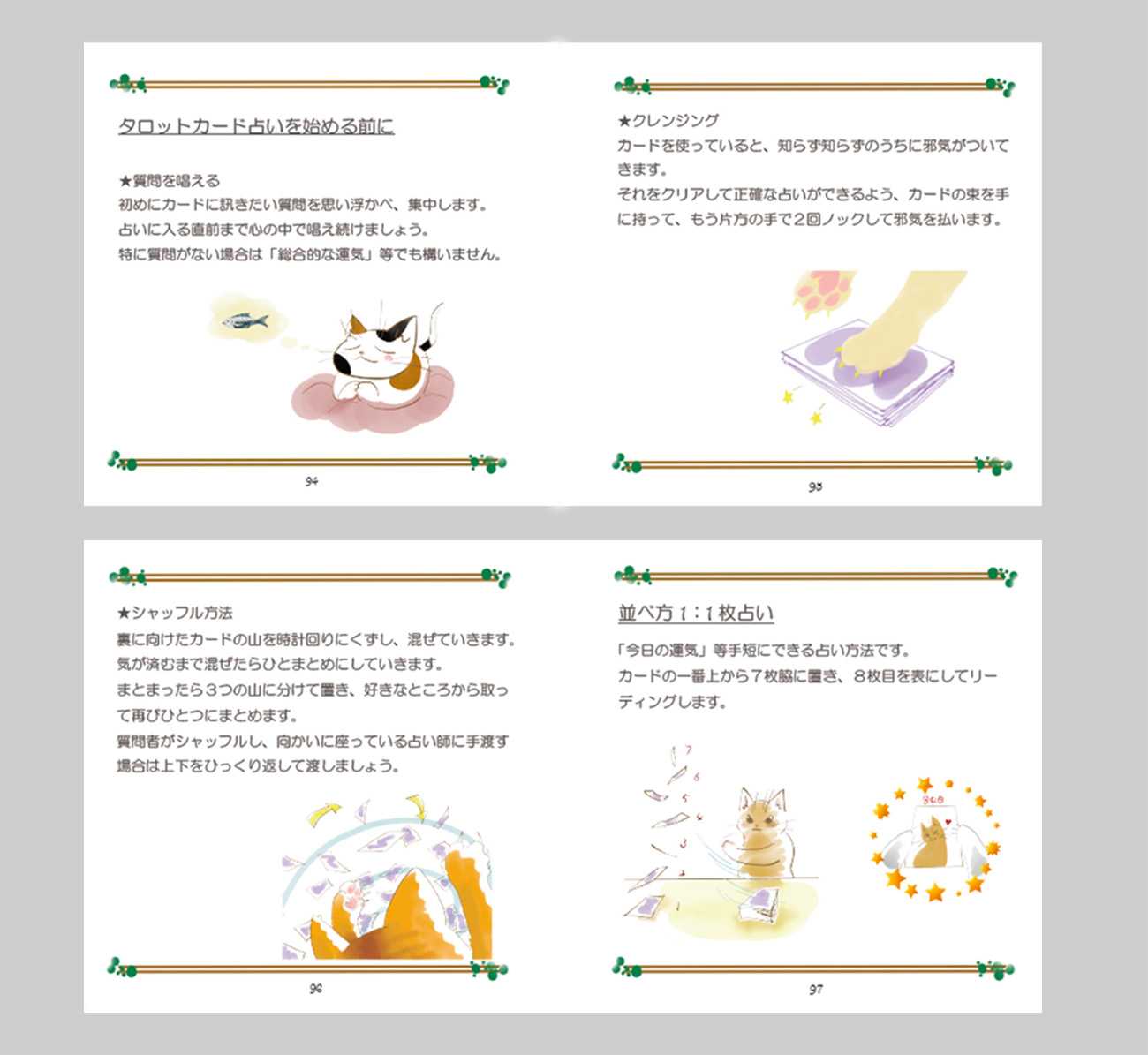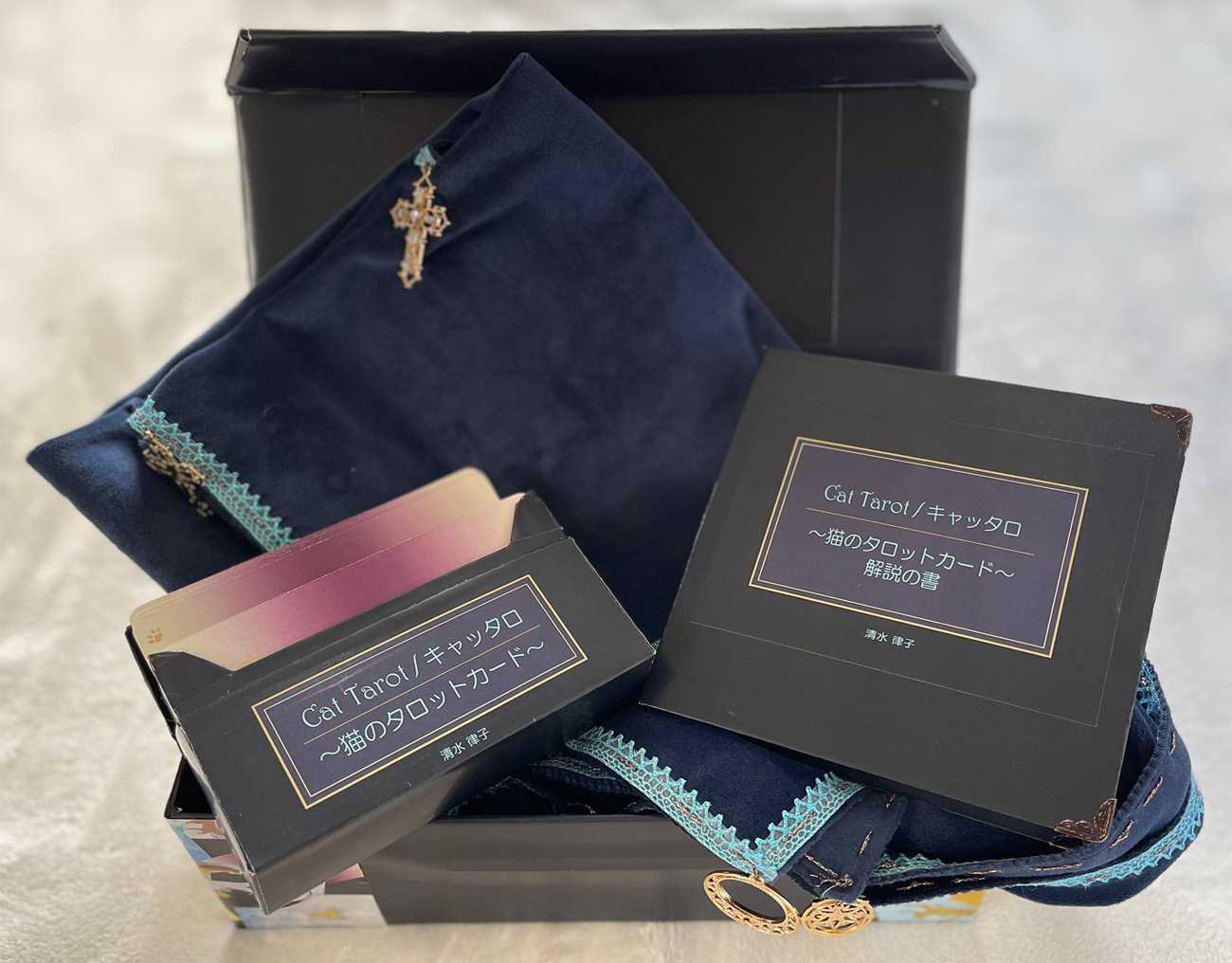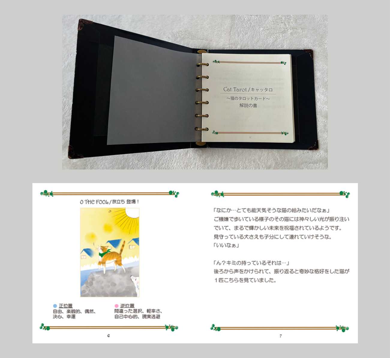 タロットカードは自分に気づきを与えてくれる占いツールです。猫をメインキャラクターに据え、イラストレーション科最後の在校生として思いっきりたくさん絵を描きました。初心者でも簡単に解読できるカード、分かりやすく覚えやすいストーリー仕立ての「解説の書」、大判タロットクロス、すべてを収納できる大箱付きです。