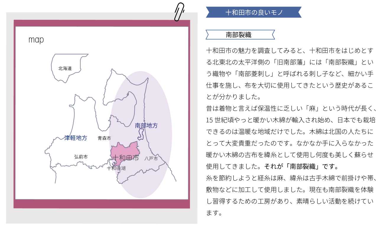 そんな裂き織りと十和田市の良さをお伝えし、いつか訪れてもらいたいと願いを込めました。