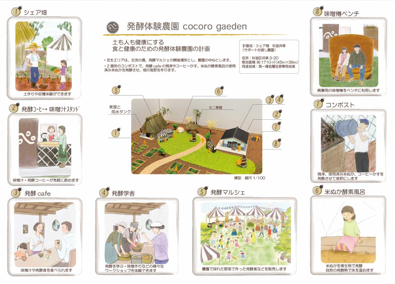 そして作品の一部に、現在私が利用する「シェア畑」を「発酵体験ができる理想の農園」として計画につなげました。