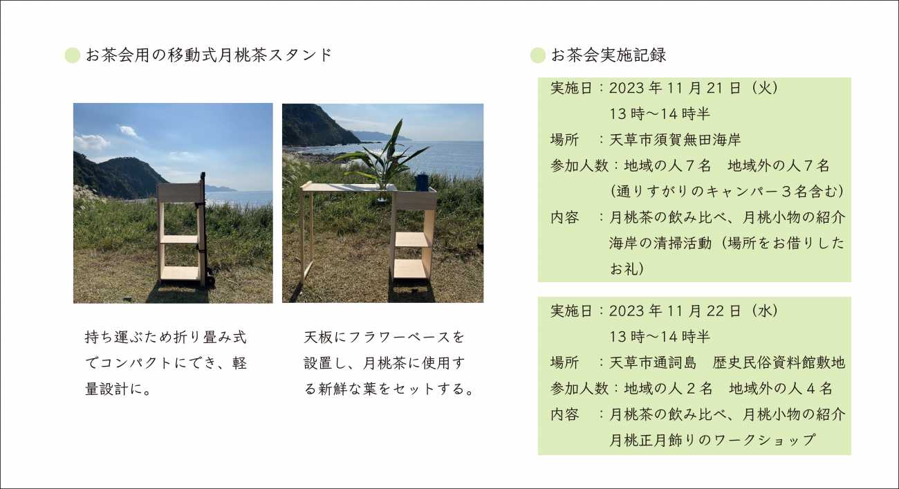 あまくさ月桃の良さを発信し、関心を持った人々が手軽に多様に、天草と出会えるきっかけを創出することを研究テーマとしました。