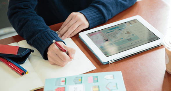 動画でのスクーリングやレポート・作品課題など、すべてオンラインで受講。